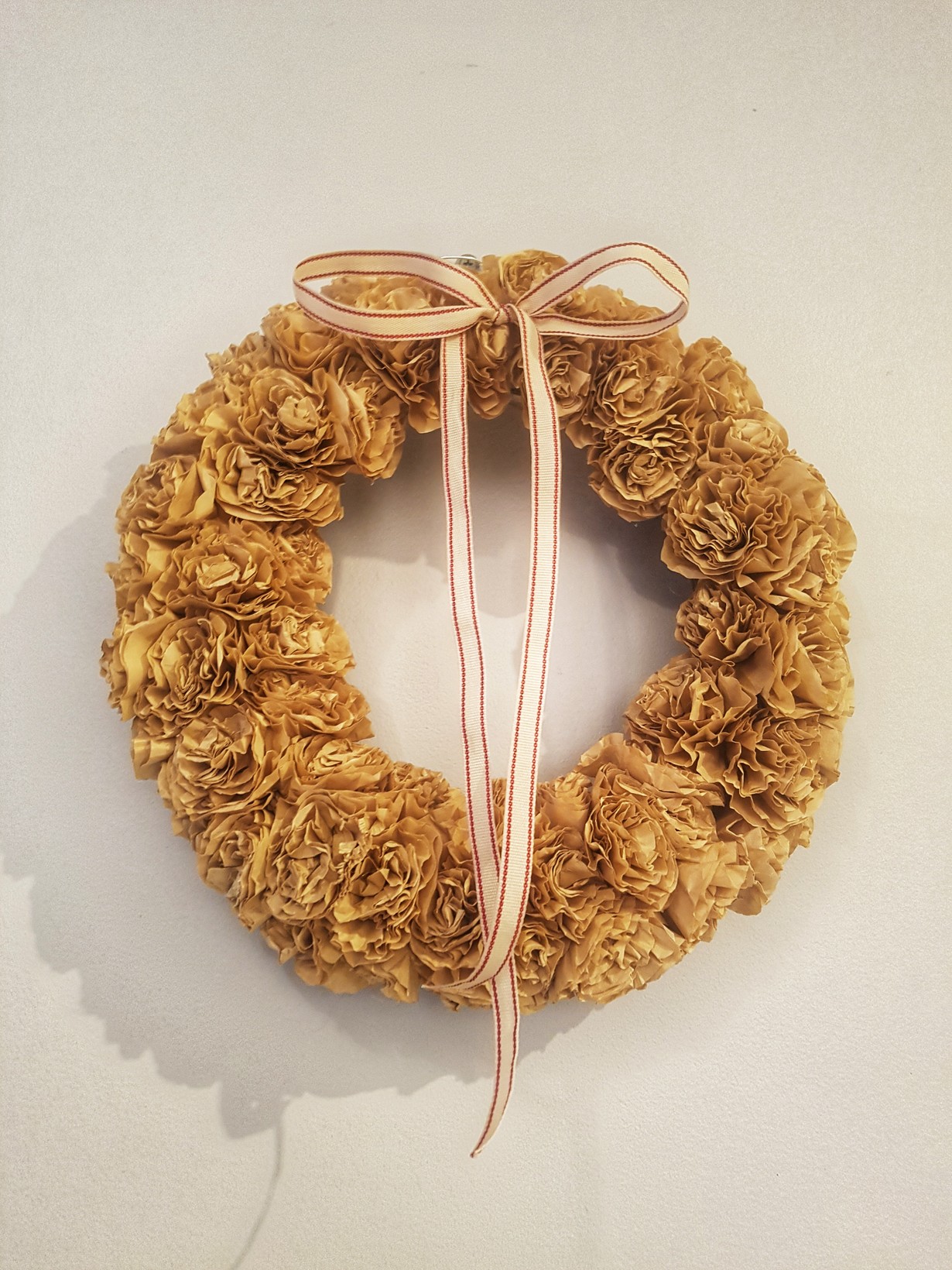 Parasta on itsetehdyt lahjat, joista näkee että tekijä on nähnyt vaivaa sen eteen. Tämä suodatinpusseista tehty ovikranssi on aivan ihana erilainen lahja ja säilyy pitkään :)