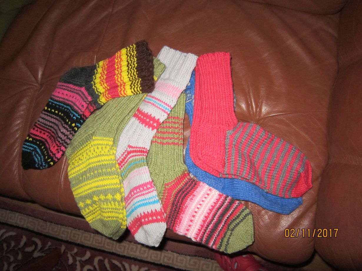 kudon sukkija lahjaksi kadun kulkijoille--syöpäklinikalle--sukulaisille...Lahjoja antaessa saan itselleni todella onnellisen/tyytyväisen mielen--jopa onnellisemman kuin lahjan saaja (?)!