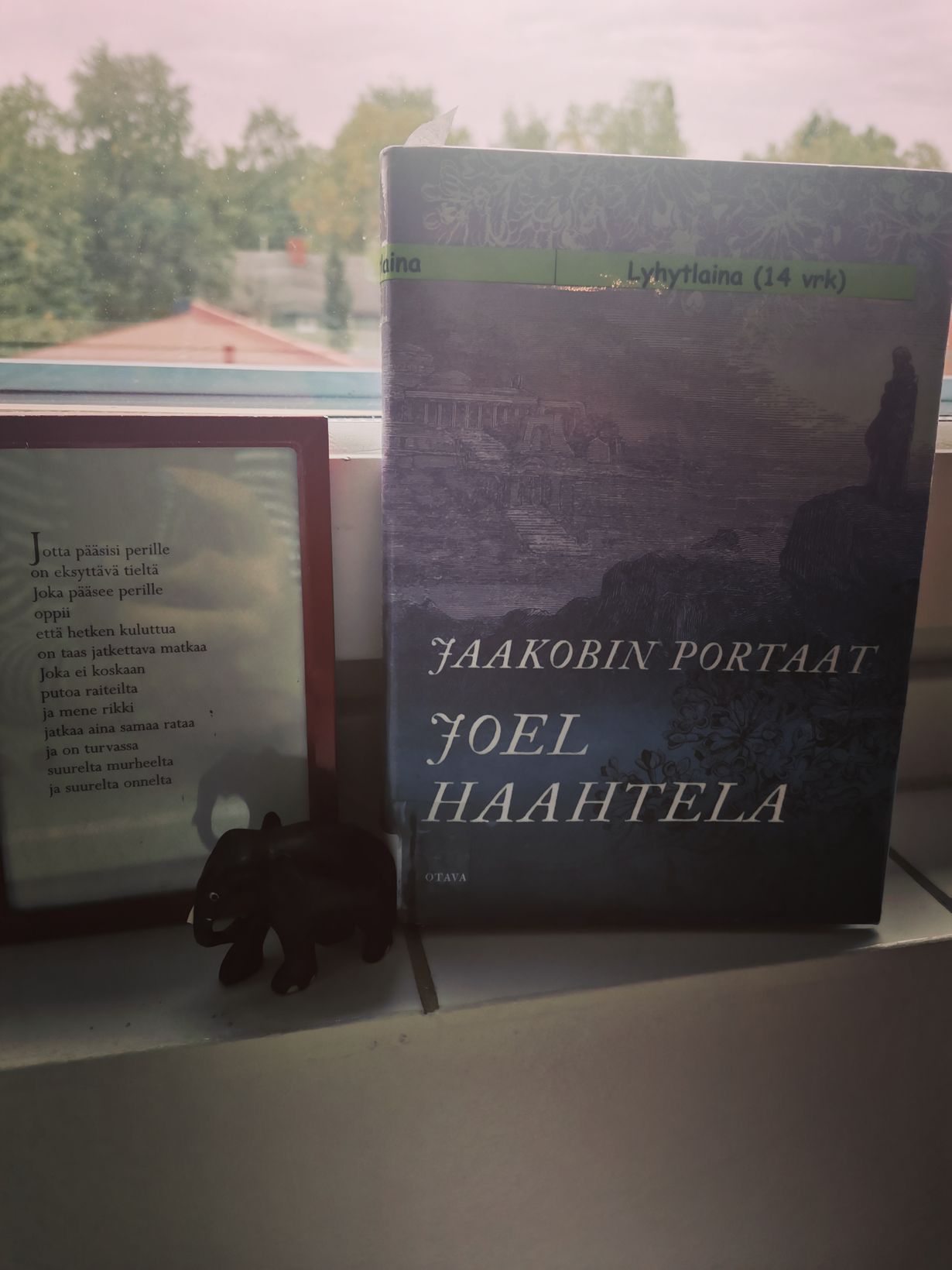 Haahtelan kirja,Jaakobin portaat,on täynnä lyhyitä lauseita,joihin on osattu tiivistää oivaltavan tarkasti elämän isoja tapahtumia. Harvoin tulee vastaan kirjaa,josta haluaa kirjoittaa talteen tekstikänpätkiä. Vähän kuin lempirunojaan.