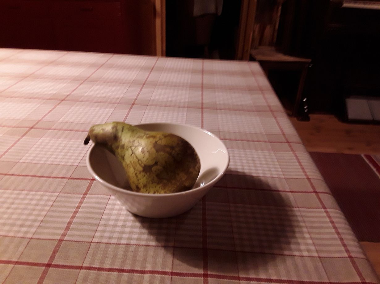 Päärynä tai muu hedelmä. Voi syödä jälkkäriksi aamupalalla, lounaalla, välipalana, päovällisellä, iltapalalla....