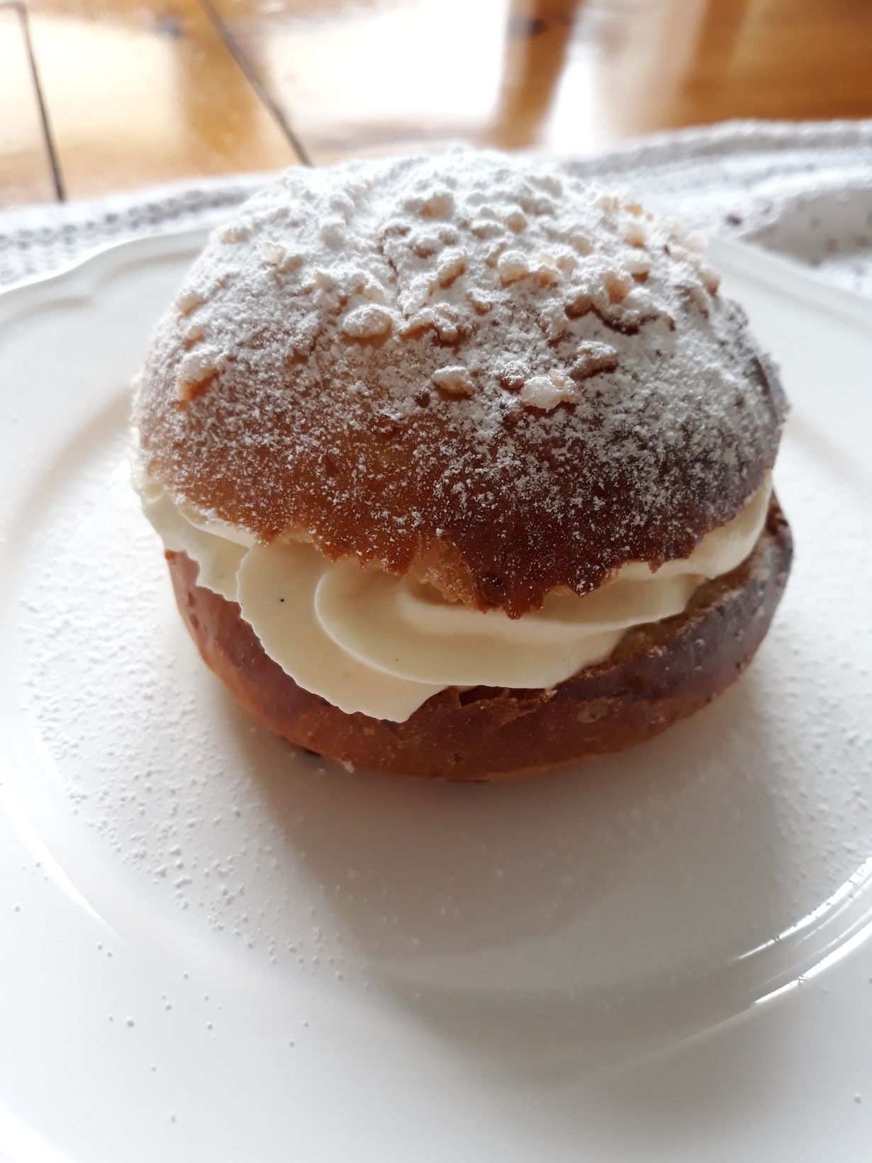 Näin laskiaisen aikaan sopii tällainen itse tehty laskiaispulla hyvin jälkkäriksi tai välipalaksi tai päiväkahvin kylkeen. Hyvää oli, sen voin kertoa.