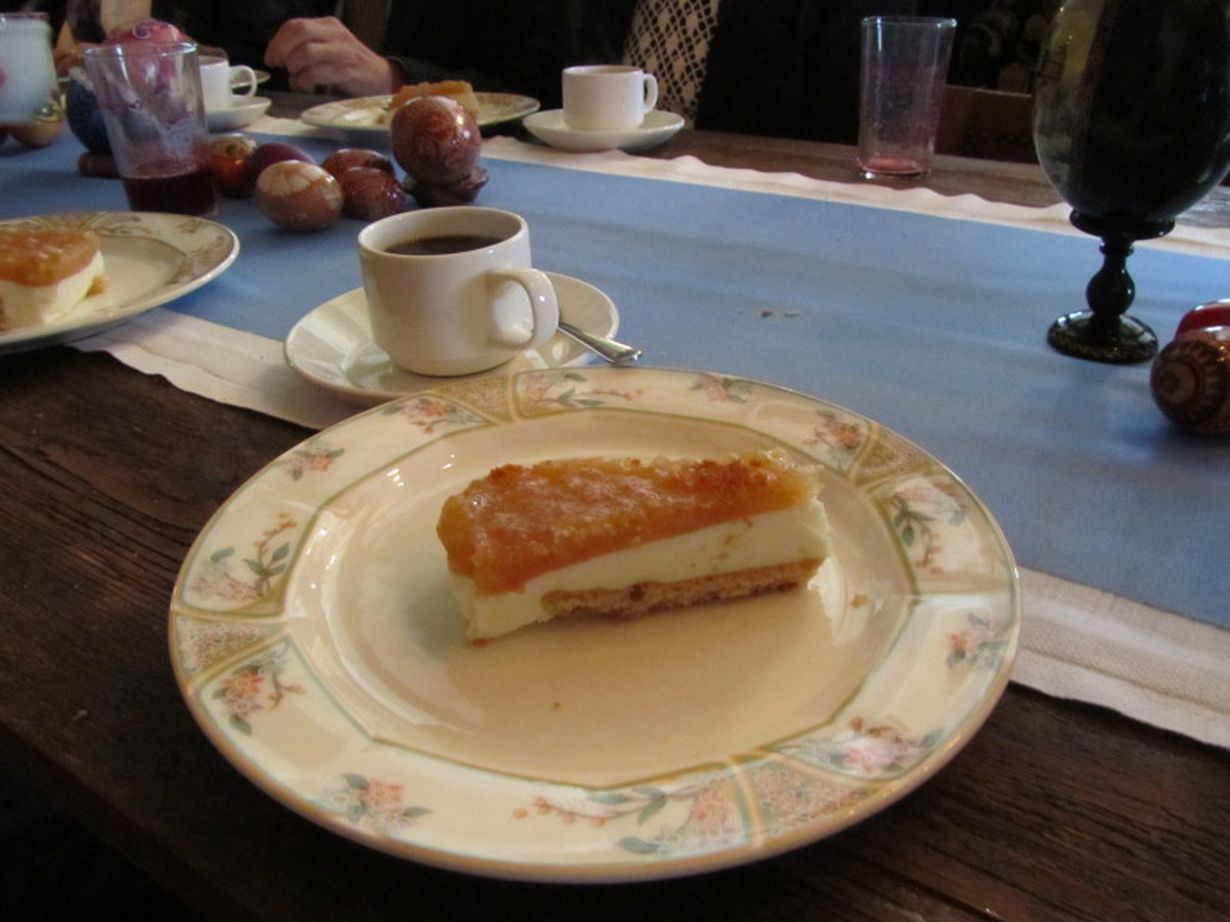 Luostarin lounaalla oli komea kattaus, mikä kruunattiin kuvan herkulla kera kahvin, maistuis varmaan sullekin