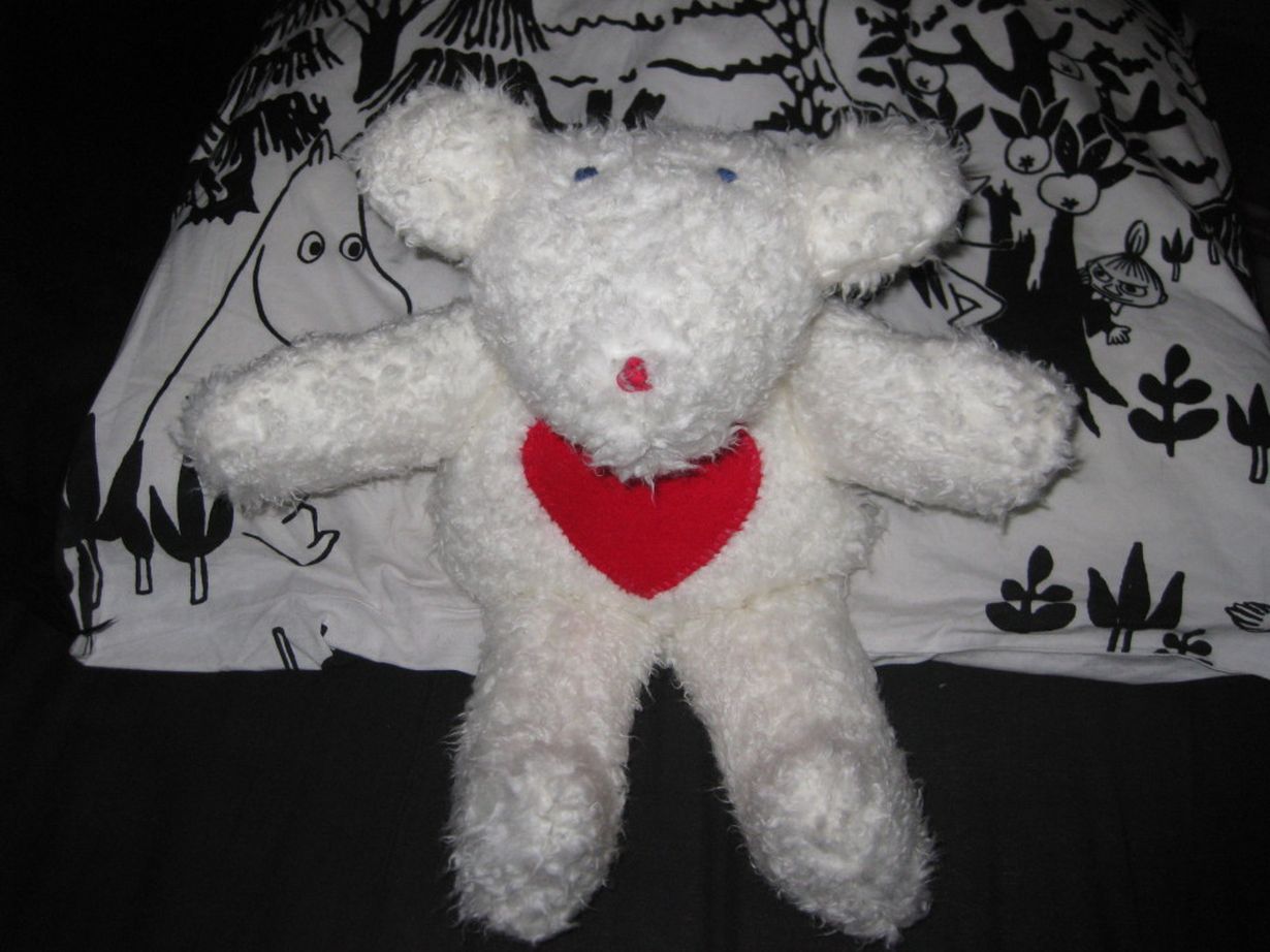 Tein kyseisen nallen käsin avopuolisolleni viime ystävänpäivänä. :) Ompelin sen etumukseen huopakankaasta myös sydämen. Seuraavana ystävänpäivänä aion tehdä Jalle-nallelle ruskeanvärisen kaveruksen.
