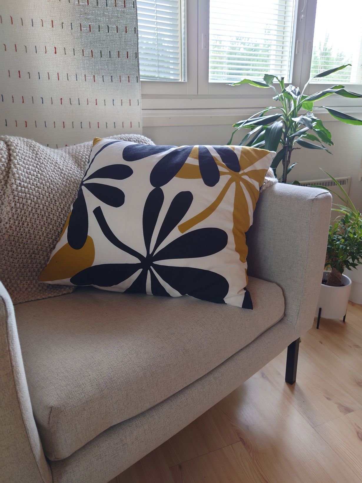Lähetä kuvakisaan kuva sisustustyynystäsi - voita Familonin peitto ja tyyny! Jämäkankaista tehty. RM 26.7.2022 klo 12:14 Itsetehty tyynyliina.