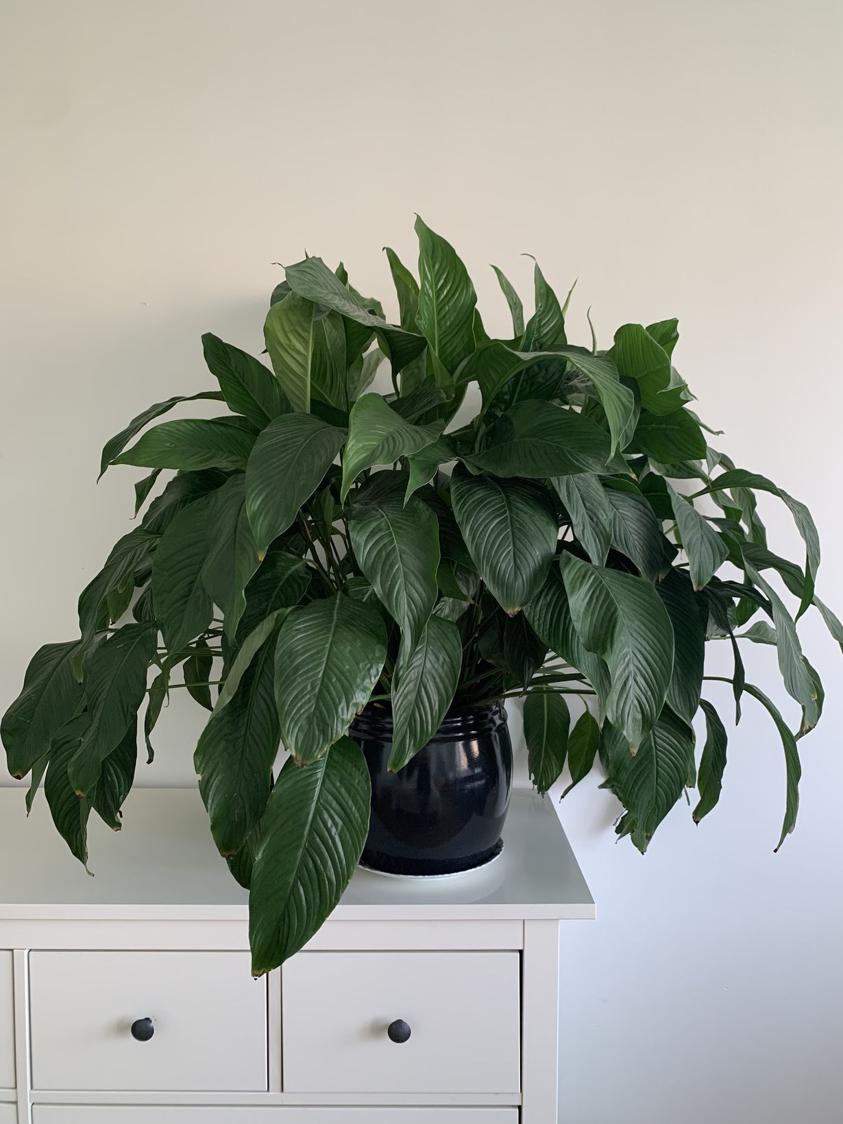Jättikokoinen noin kymmenen vuotias viirivehka sen kun kasvaa ja kasvaa, vaikka multaa ei ole vaihdettu vuosiin ja ravinteeksi se saan vain vettä. Kenties se kasvaa ihastelun voimalla mitä se saa päivittäin komeudestaan. Se virkistää makuuhuoneen huoneilmaa ja piristää vehreydellään. Nyt uudessa kodissa sille pitäisi löytää sopiva sen valtavan painon kestävä kukkataso.