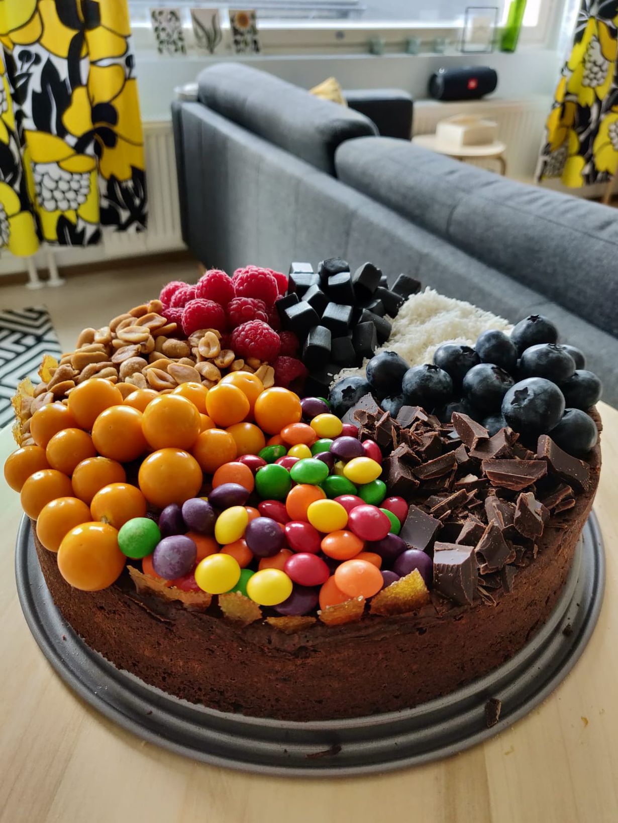 Suussa sulavaan kahden suklaan browniepohjaan tehty sektorikakku, jossa jokainen perheenjäsen saa juuri oman makuisen siivun.