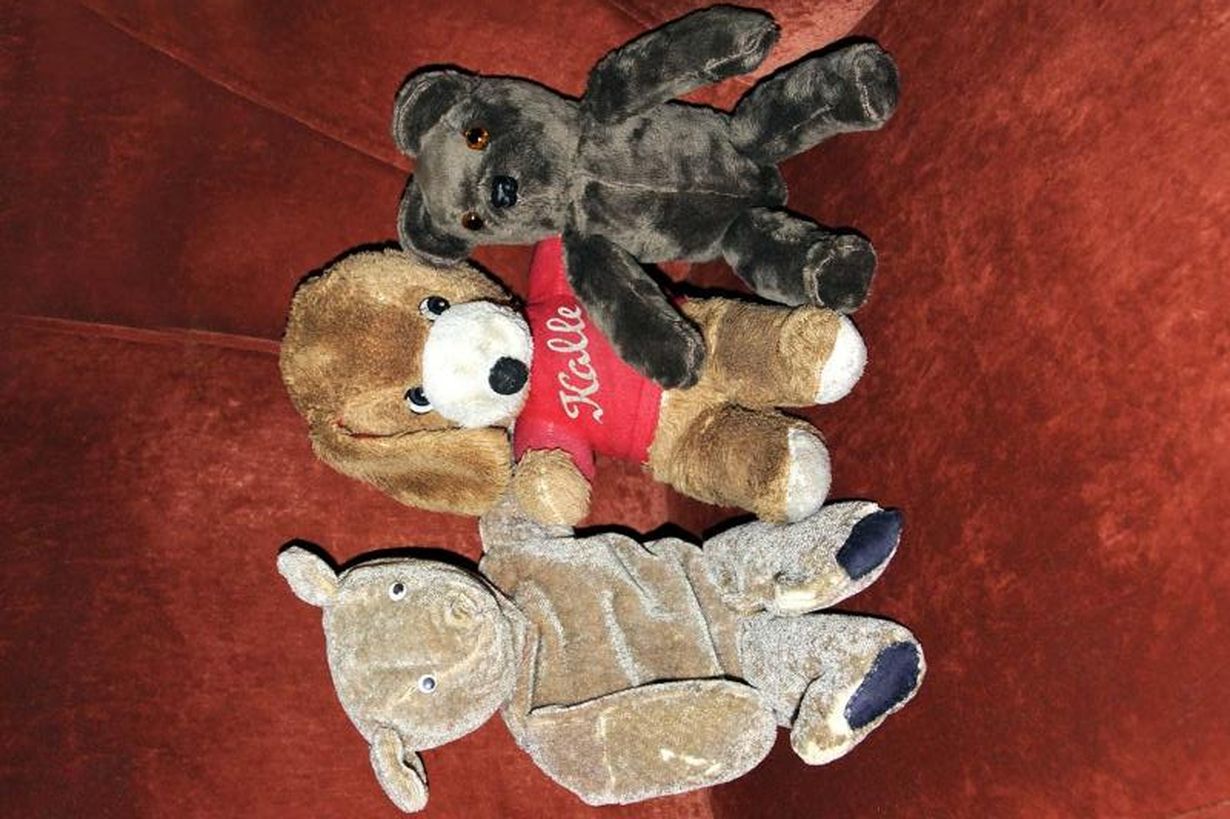 Kuvassa Ukin Nalle nyt uusilla sahanpuruilla 50-luvulta, Isin jo korvaton Kalle 80-luvulta ja pikku-Joonaksen Nalle hand made by Mummi.