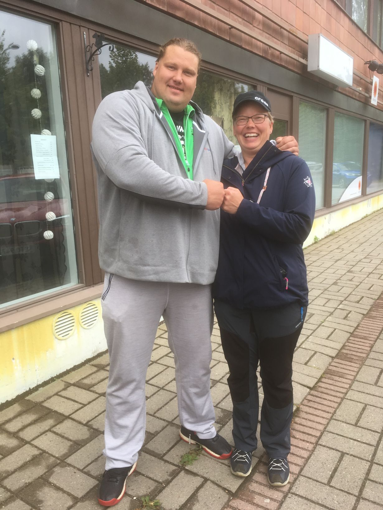 Joskus 176 senttinen nainenkin tuntee itsensä pieneksi. Tapasin menneellä viikolla sattumalta arkiaamuna Suomen vahvimman miehen Mika Törrön Kontiolahdessa kahvilan edessä.