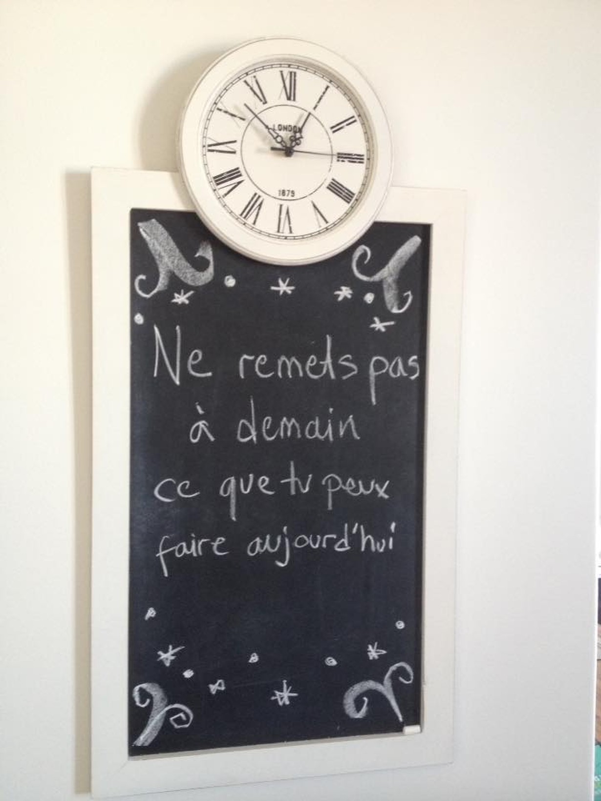 Ranskaksi kaikki kuullostaa vaan paremmalta, samoin lause: älä jätä huomiselle sitä minkä voit tehdä jo tänään. Kellon alle kirjoitettuna muistuttaa vielä paremmin ajankäytöstä... :-)