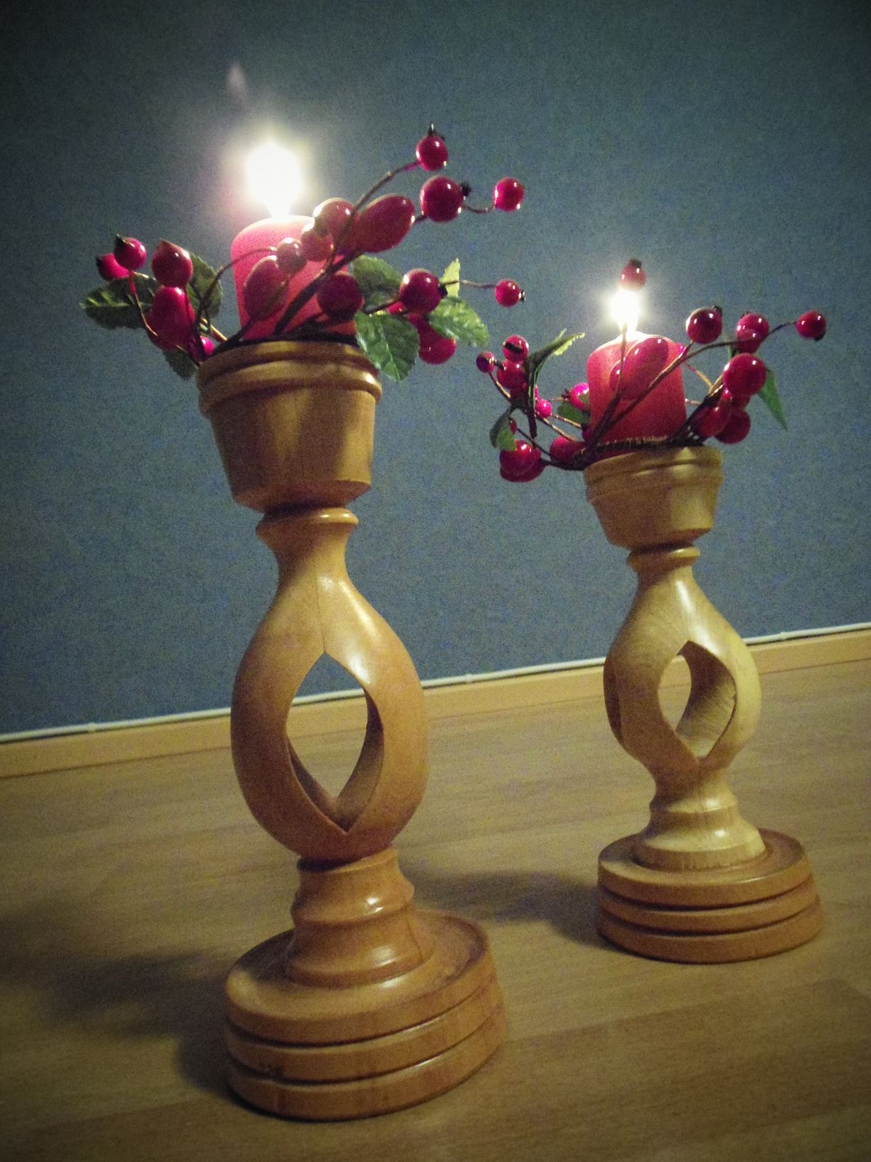 Joulupukki yllätti vuonna 2007 kauniilla ja uniikeilla puisilla kynttilänjaloilla. Mestarisorvaajana toimi Ensio Ukkonen, Ruoveden Väärinmajasta.