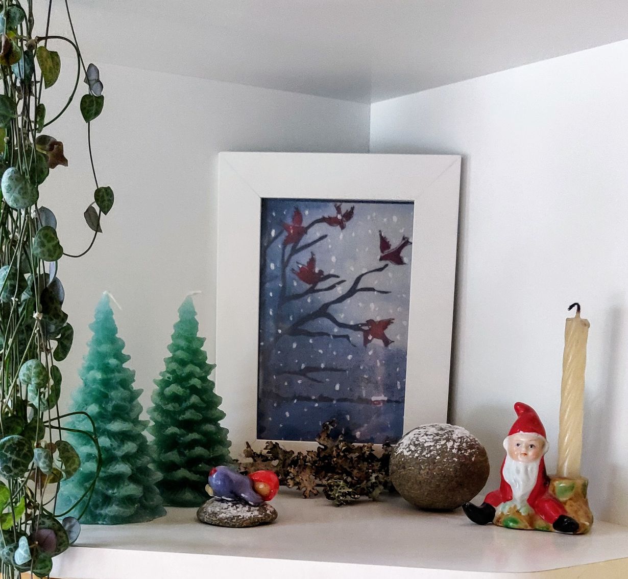 60-luvun joulutonttu on tärkeä ja rakas lapsuudessa saatu lahja. Sen kynttilää vain en ole raaskinut polttaa.