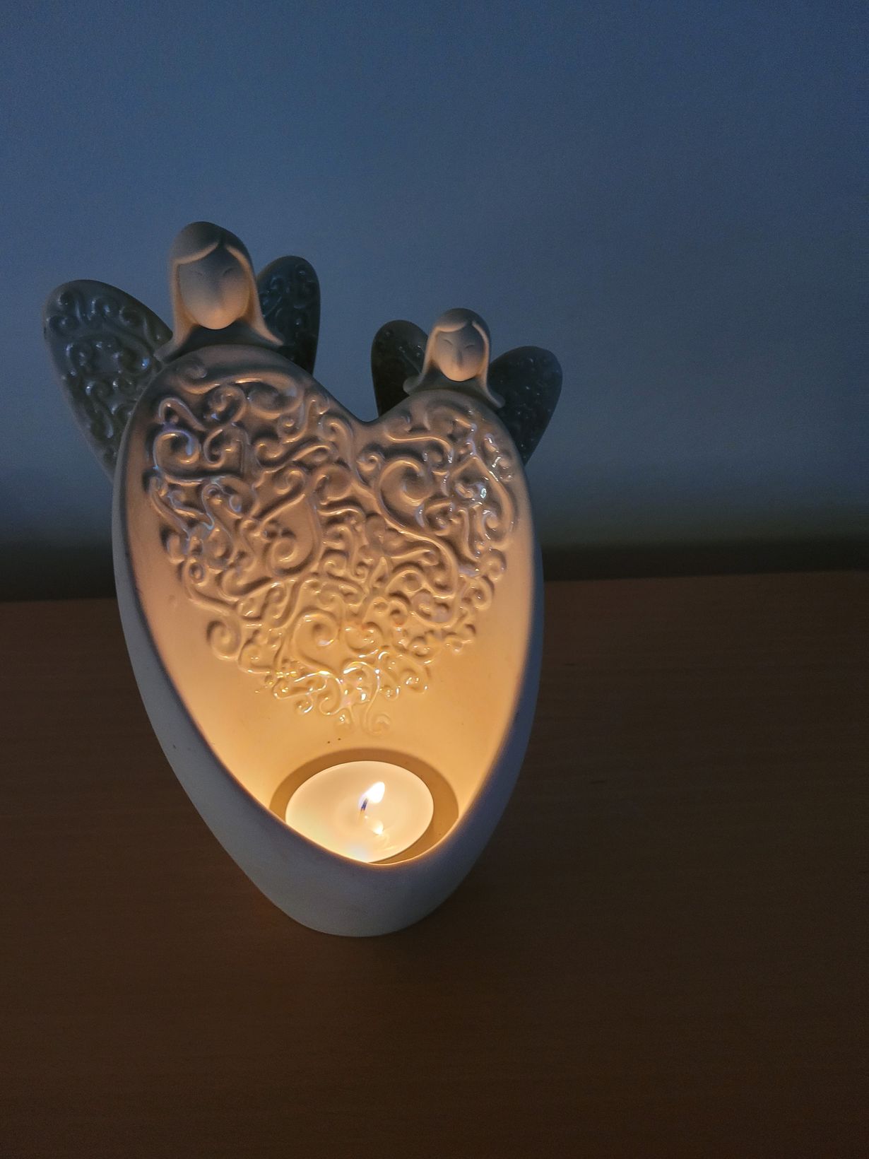 Tämän ihanan enkelikynttelikön sain siskoltani n. 20 vuotta sitten ja se on lohduttanut vaikeina aikoina muulloinkin kuin Jouluna.