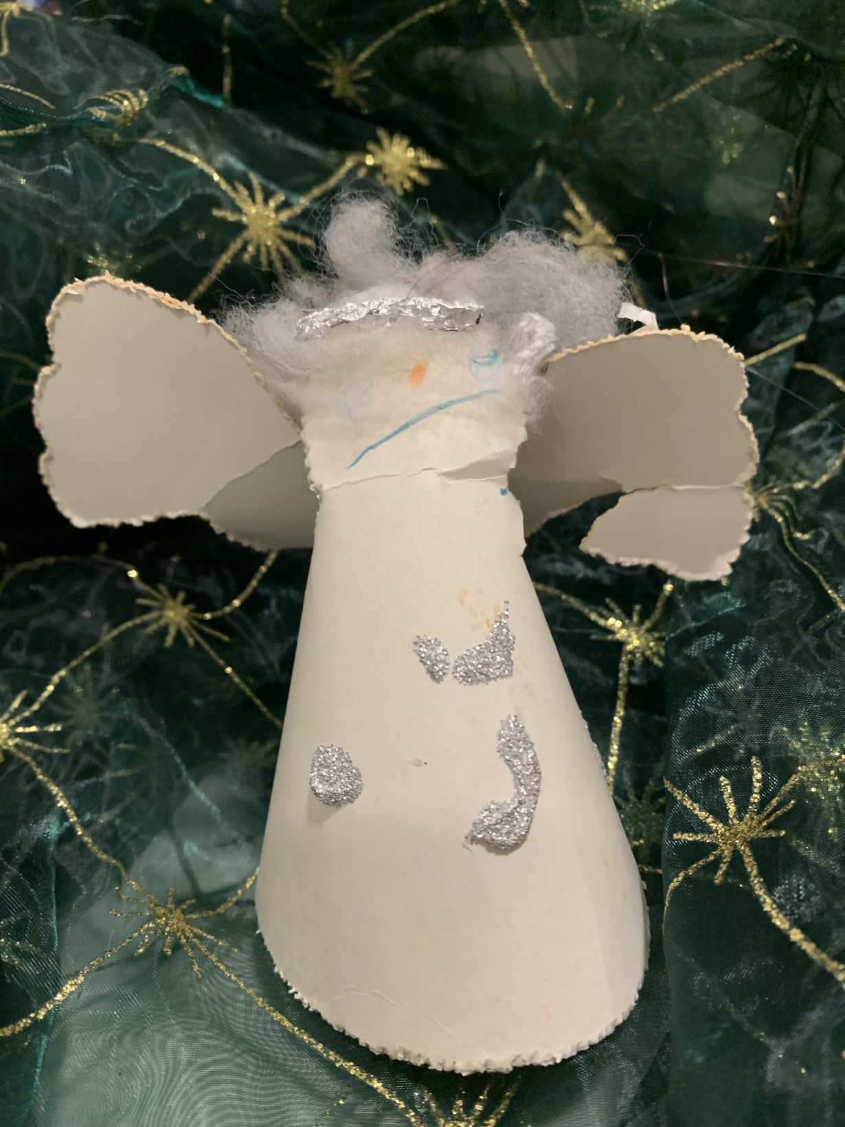 Poikani yli 30 vuotta sitten ekaluokkalaisena askartelema hellyyttävä enkeli kuuluu ehdottomasti joka vuosi joulun koristeisiin.