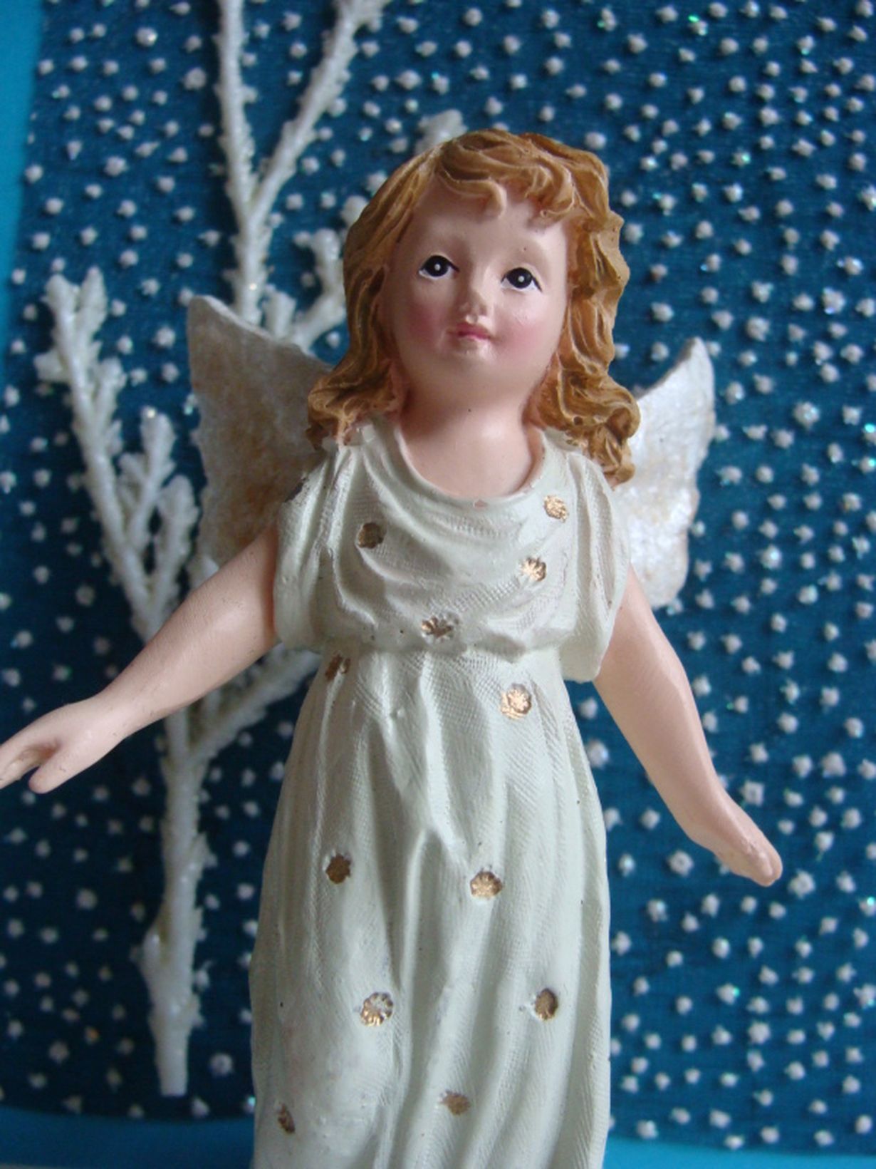 Pikkutyttönä uskoin, että minulla on ikioma suojelusenkeli. Ehkä se oli tämän kuvassa olevan pikkuenkelin näköinen mielikuvissani?! Tämä enkeli tuli kotiini erään joulun alla lahjana.