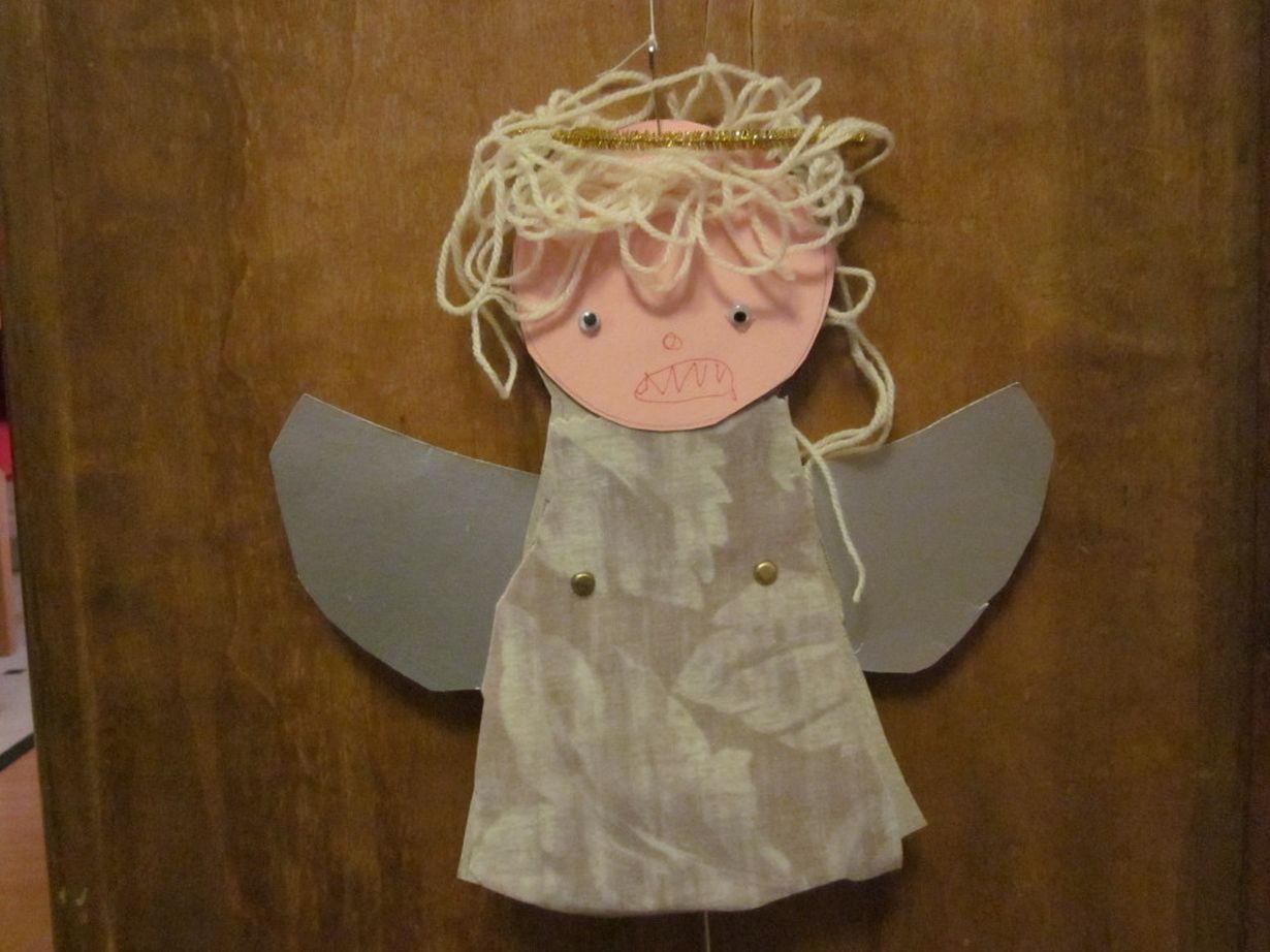 Otto 5-v teki päiväkodissa tämän suloisen enkelin, jonka "hymy" on saanut myös ystäväni ja työkaverini tosi hyvälle tuulelle. Oli ihan pakko ottaa enkeli mukaan työpaikalle ja siellä se oli roikkumassa joulun alla iloa tuomassa (ja muutama kopiokin siitä otettiin...)