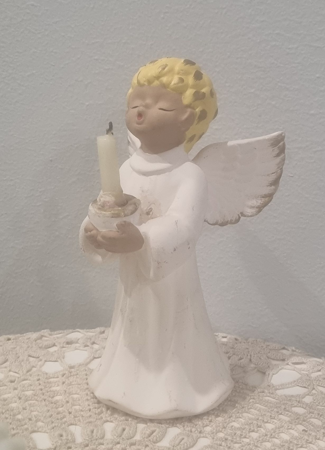 Äitini ostiminullejoka joulu erilaisen enkelin. Tämä on lapsuudestani ainoana jäänyt ehjäksi. Sen laitanesiin jouluksi ja se muistuttaa minua edesmenneestä äidistäni.