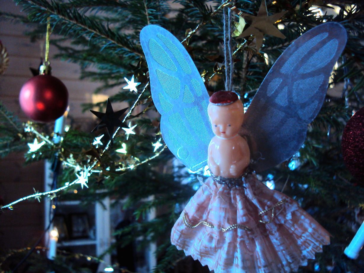 Jouluenkelini on yli 50 vuotta vanha. Sain sen pienenä tyttönä naapurin Alma-mummulta, ja hän oli sen itse askarrellut. Vähän siivet repsottava ja kulahtanut enkeli, mutta joka joulu kuusemme ehdoton koriste!