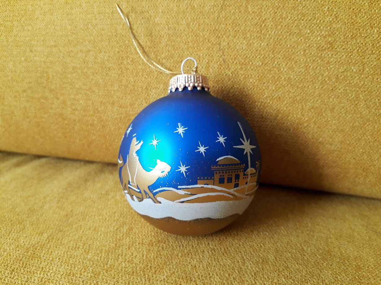 Kävin siskoni kanssa muutama vuosi sitten Berliinin joulumarkkinoilla ja tämä ihana sininen joulupallo tarttui mukaan joulukaupasta. Kuva ei tee oikeutta, sillä joulupallo on todella sievä luonnossa ja kaunis muisto jouluisesta Berliinistä.