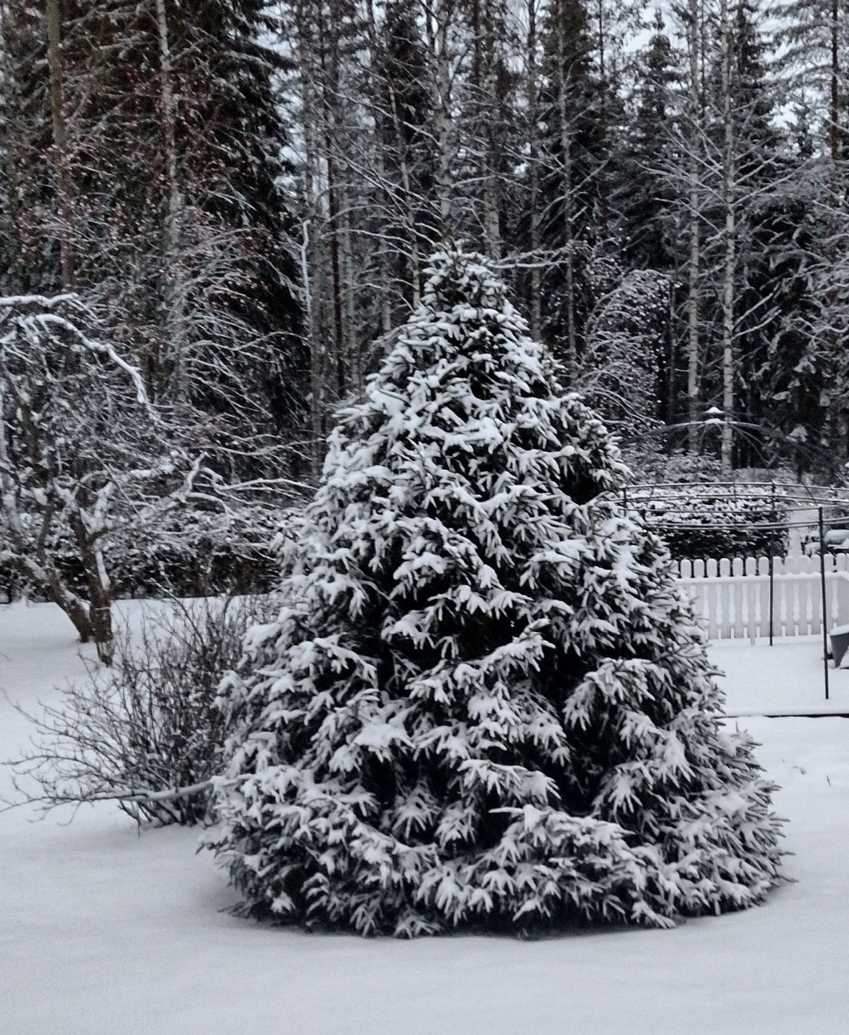 Pihakuusemme saa joka joulu oksilleen jouluvalot. Se tuo iloa ja valoa paitsi meille ja vieraillemme myös naapureille ja ohikulkijoille.