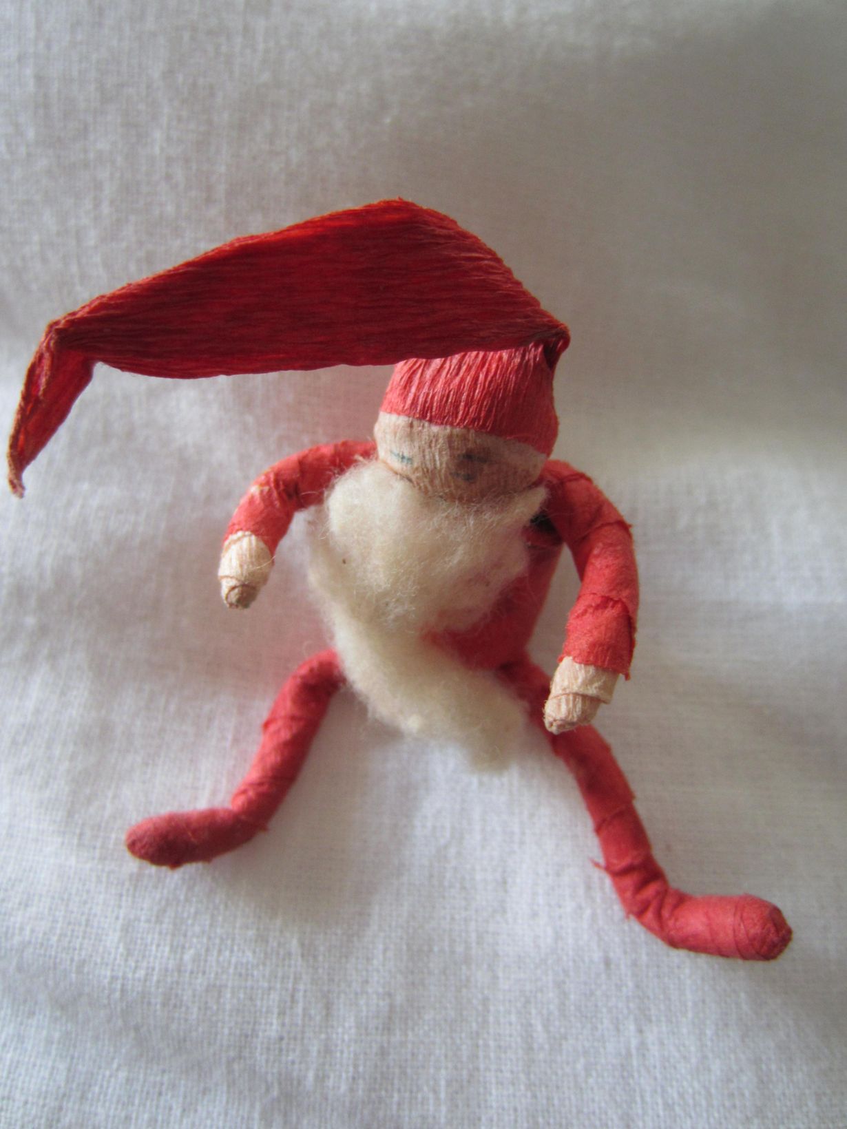 Tonttuni on lahja koulun joulujuhlassa. Ikää sillä on noin 55-vuotta ja yhä edelleen se istuu kuusessamme kunniapaikalla.