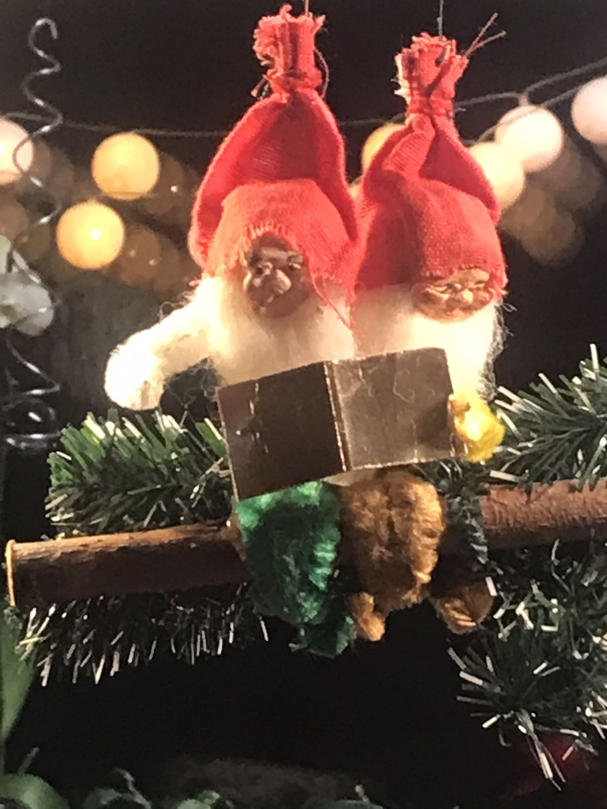 Vietimme aina työpaikalla pikkujouluja laskentaosaston huoneessa. Sain lahjaksi tämän joskus 1960-luvun puolivälissä. Siitä asti se on ollut koristeena jouluisin!