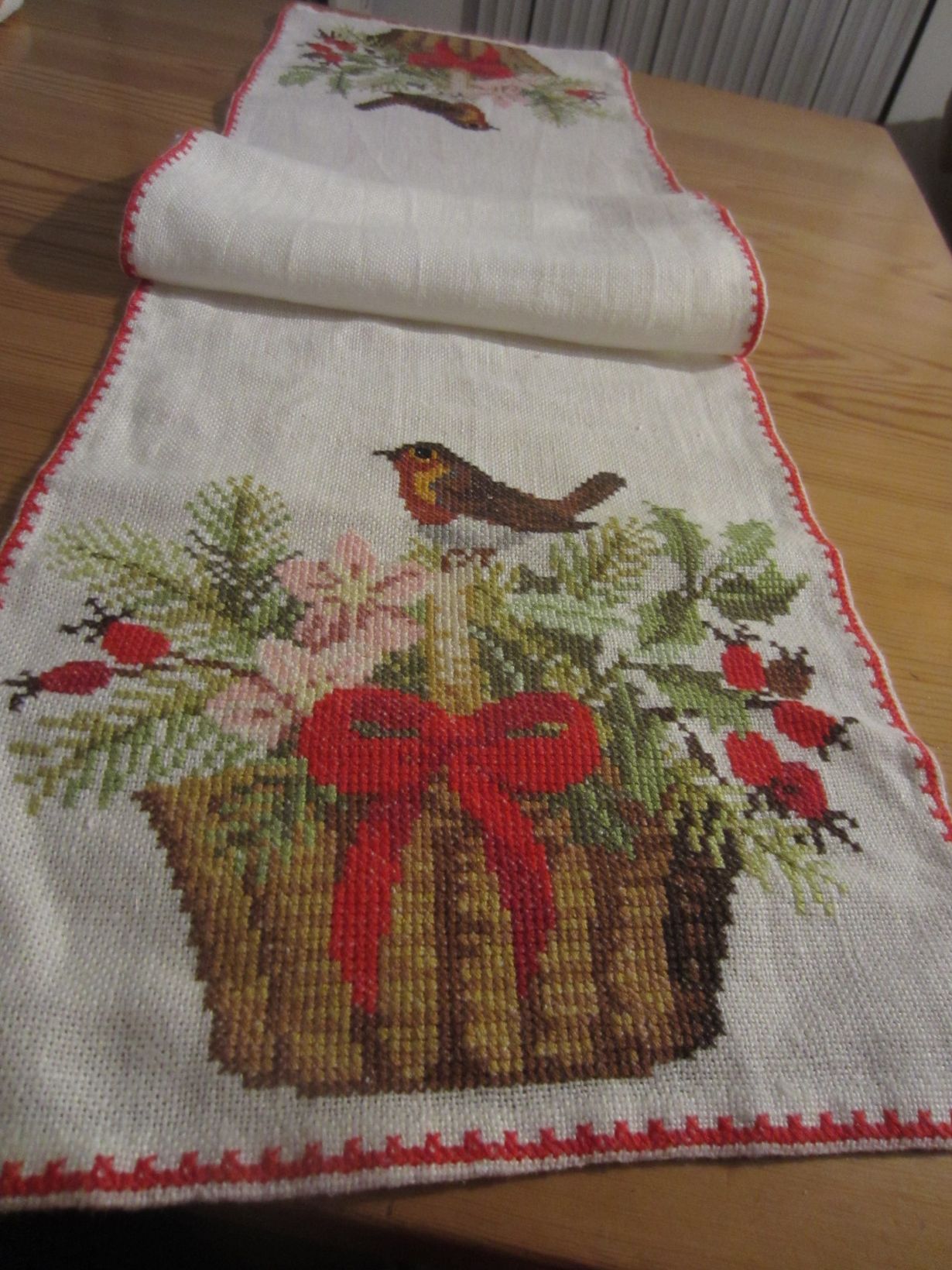 Toinen kahdesta vuosikausien aikana valmistuneista ristipistotöistäni on tämä jouluinen kaitaliina