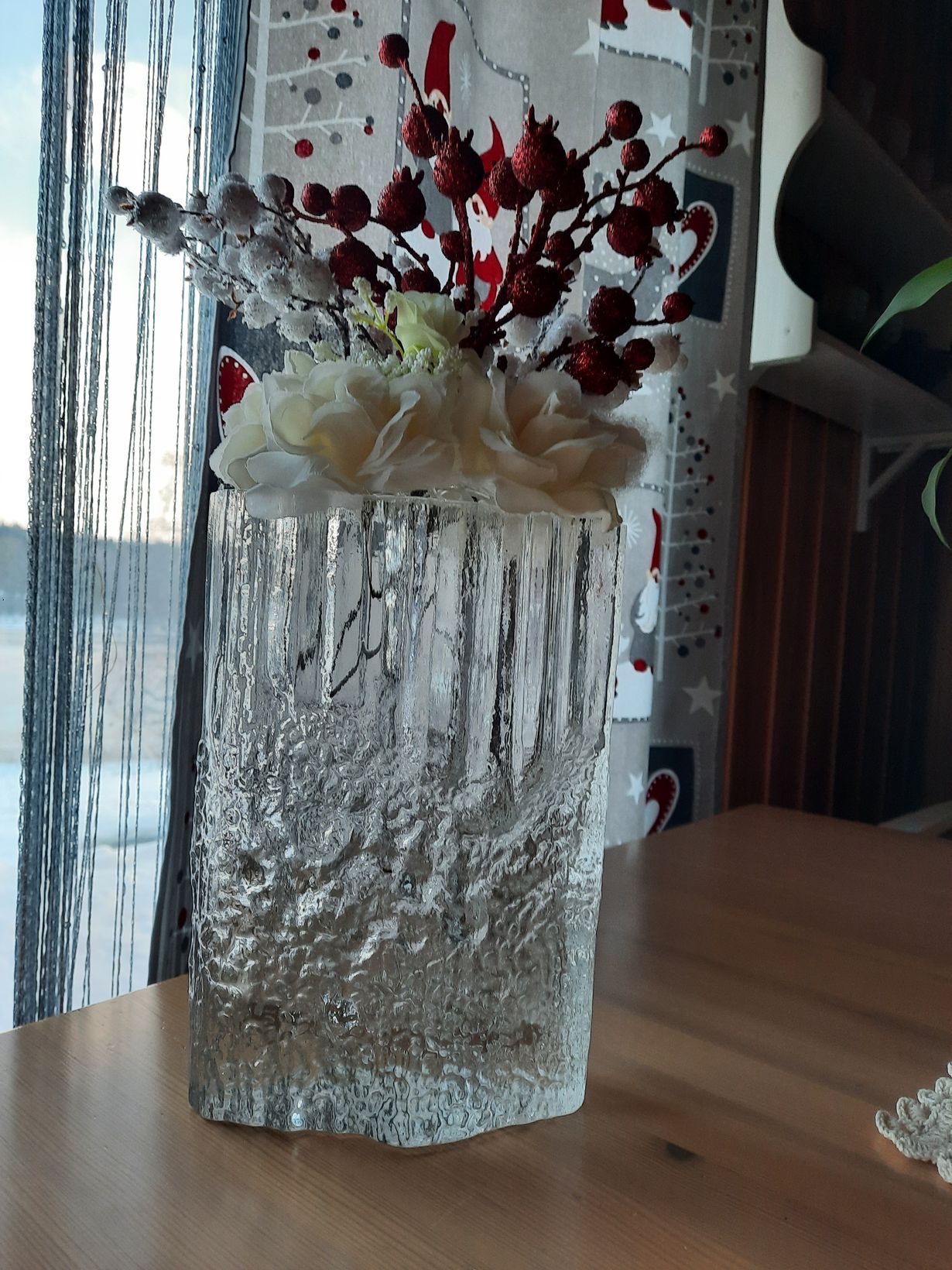 Saanut perintönä kyseisen,todella painavan maljakon.siihin käy kaikki kukat kauniisti.