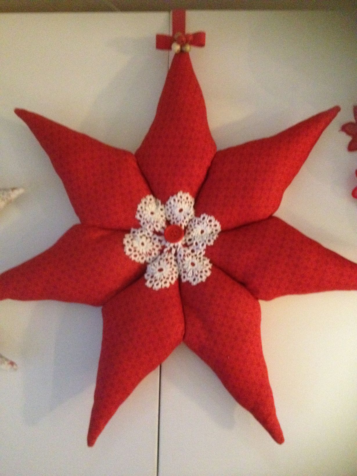 Kuvaa joulukoristeesi - voit voittaa Nanson lahjakortin! Joulutähti kankaasta 15.9.2016 klo 18:35 Joulutähti äitini ikkunaan,pitsikukka kirpputorilta. Kaava alunperin ruotsalaisesta lehdestä,koristelu oma ideani.