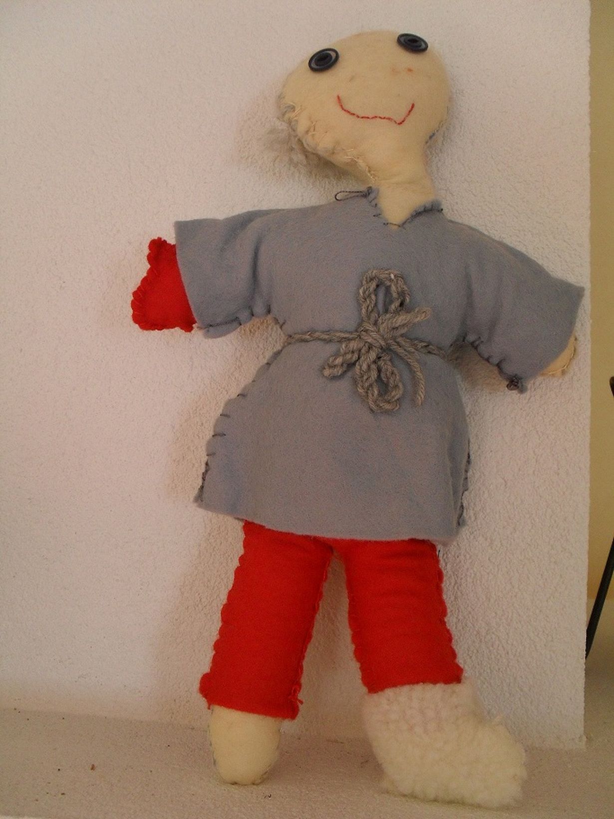 Tontun teki poikani ala-asteella ollessaan. Vuosien saatossa lakki, vantus ja sukka ovat kadonneet, mutta tonttu on jo yli 20 vuotta joka joulu kodissamme paikan saanut.