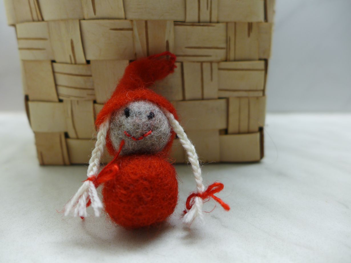 Lähettämäni kuva on huovutetusta joulutontusta. Olen suunnitellut ja toteuttanut mallin noin 10 vuotta sitten itse. Koululaisten ja muiden ryhmien kanssa olemme huovuttaneet näitä pieniä tonttuja kuusen koristeiksi ja maskoteiksi.