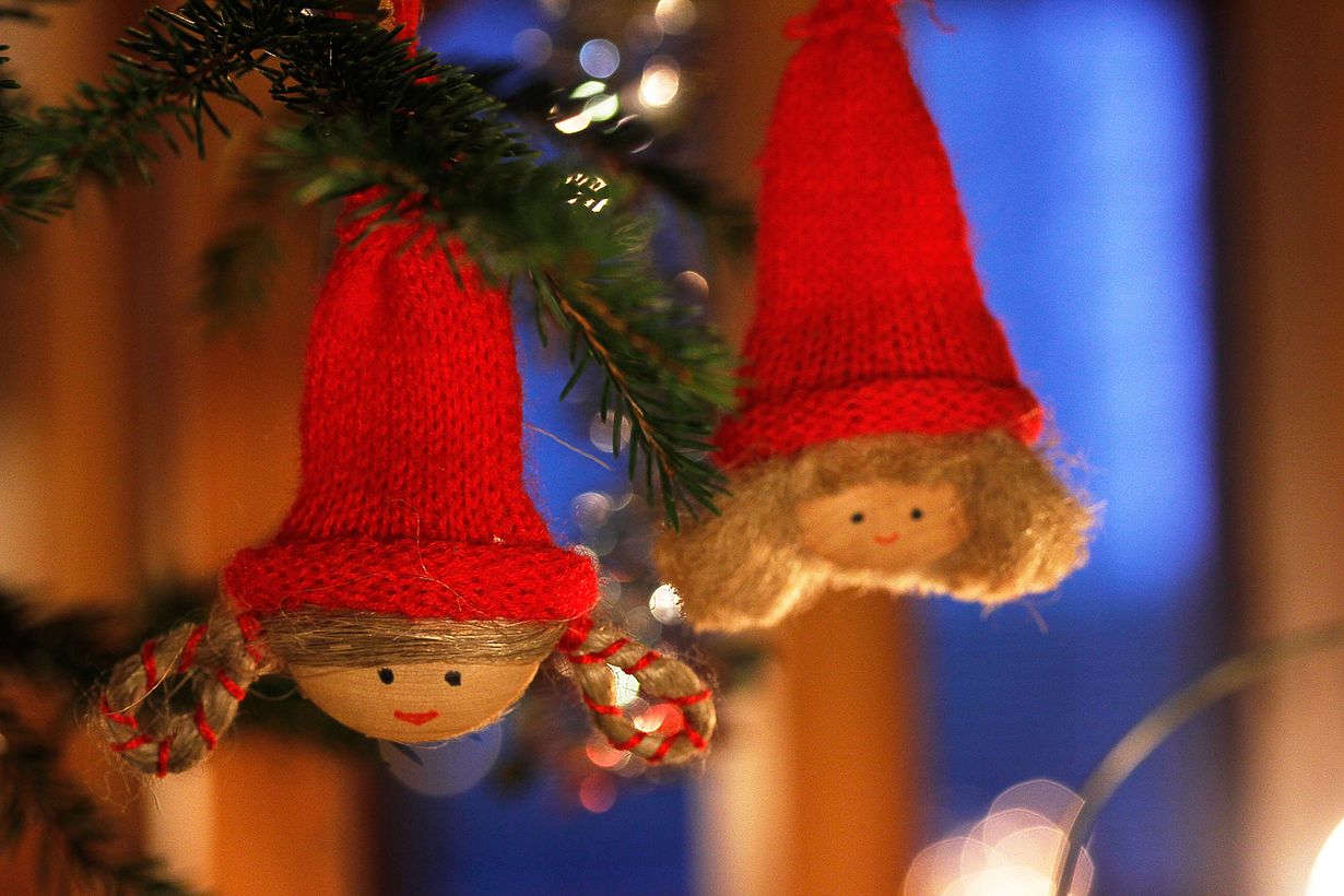 Siskoni ottamassa kuvassa olevat koristeet saimme lapsina ja ne roikkuvat vanhempiemme kuusessa edelleen joka joulu. Minulla oli silloin pitkät hiukset ja siskolla lyhyet, kuten tottusillakin ;)