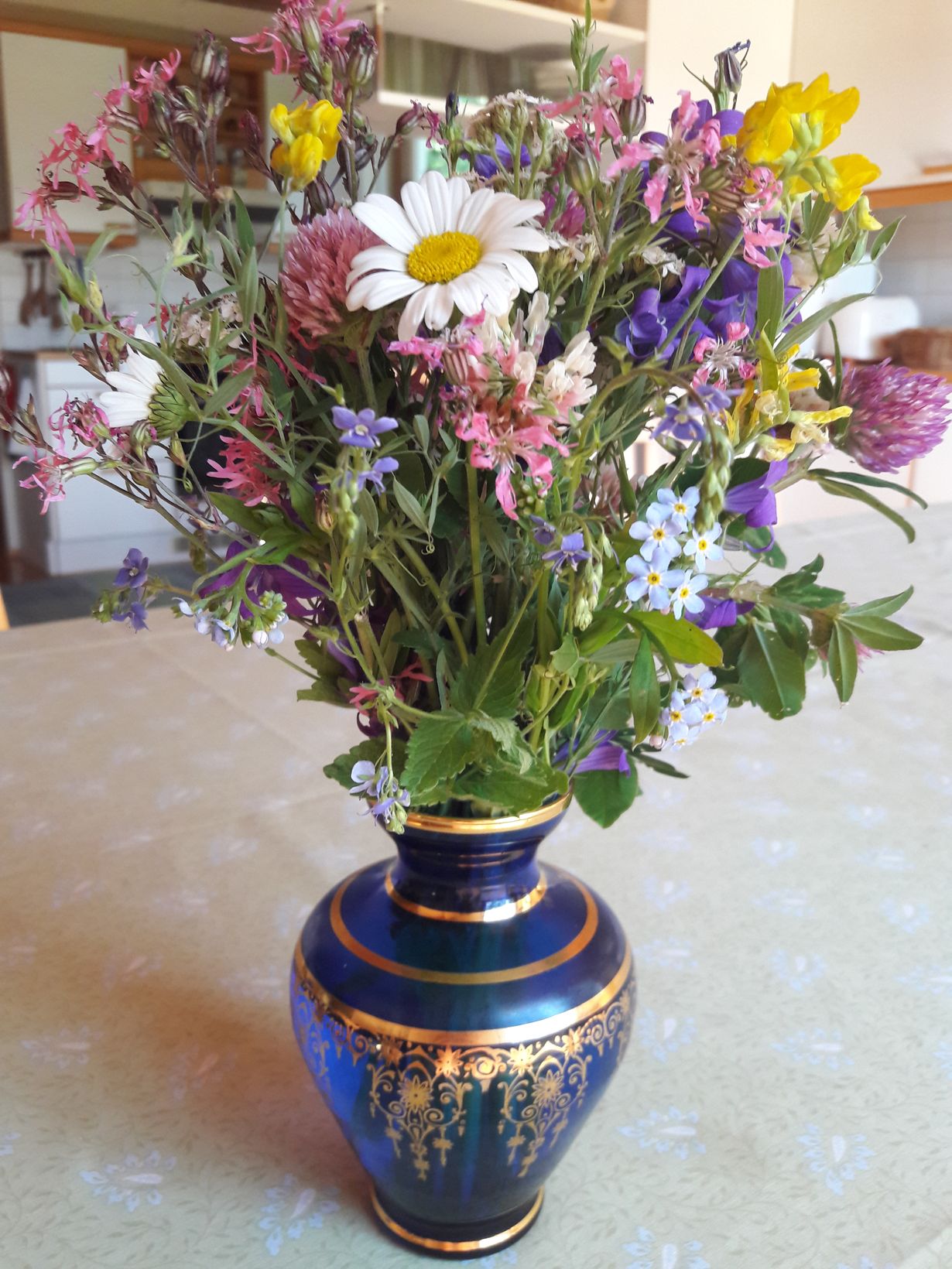Enää ei tarvitse kerätä 7 erilaista kesäkukkaa tyynyn alle, maljakkoon kuitenkin. Murano -maljakko ostettu häämatkalta Venetsiasta v. 1986