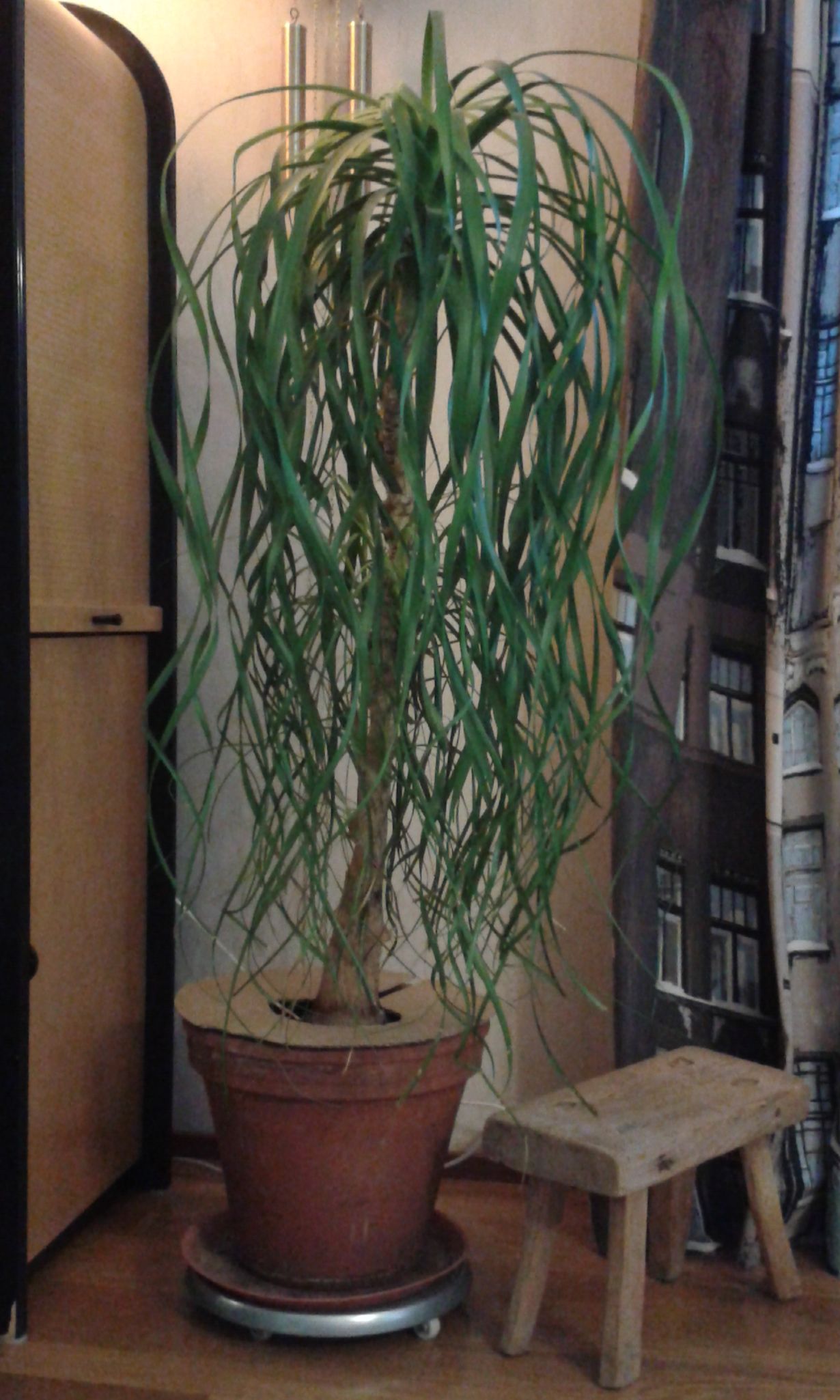 Ostin Jukkapalmun n. 20cm:n alkuna vuonna-89 odottaessani ensimmäistä lastani. Kasvi on kulkenut mukanani kestäen 7 muuttoa sekä lukuisten kissojen kiipeämisyritykset ja pissat. Kasvustoa kasvilla on nyt 102cm.