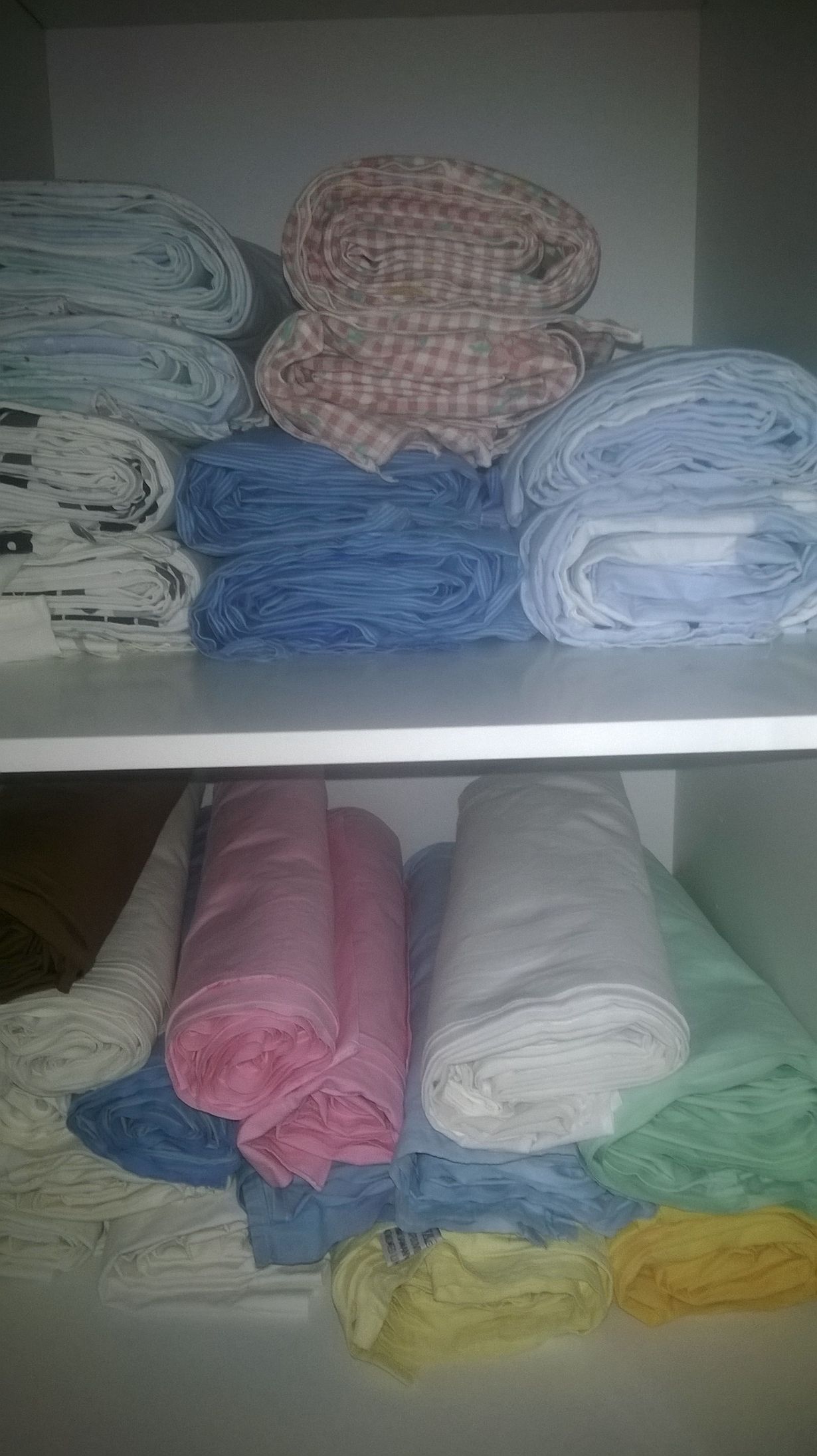Kyllä kelpaa esitellä lakanakaappi, kun juuri toissapäivänä tuli mankeloitua! Viime viikolla olivat ryppyisinä silitettävien ja mankeloitavien notkuvilla hyllyillä, ties montako kuukautta :)