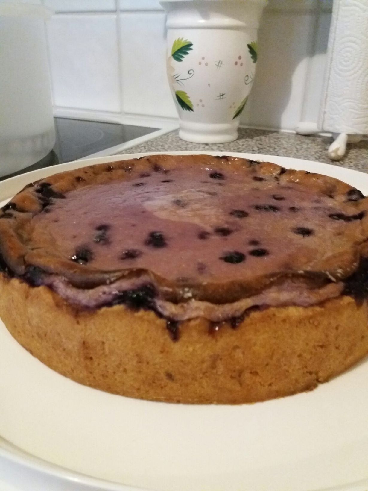 Tämä on juustopiirakka vaikka erikoisen värinen. Ensimmäinen tekemäni juustopiirakka. Hauska ja outo väri tulee mustikoista.