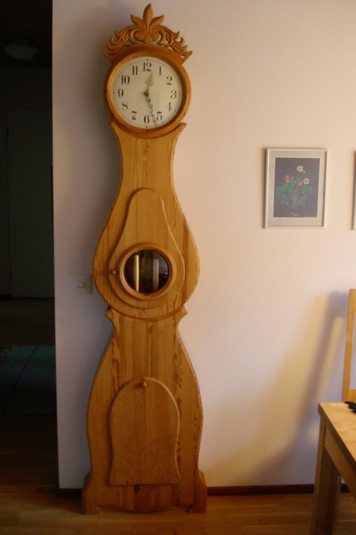 Vaimon hartaasta toivomuksesta menin kansalaisopiston puutyökurssille tekemään kaappikelloa 1980-luvun alussa.En ollut puutöitä juurikaan 1950-luvulla käydyn keskikoulun jälkeen tehnyt.Siis puutyöt eivät ole vahvin lajini, mutta sain kuin sainkin syntymään kauniin ja toimivan kaappikellon, joka toivottavasti ilahduttaa myös tulevia sukupolvia.