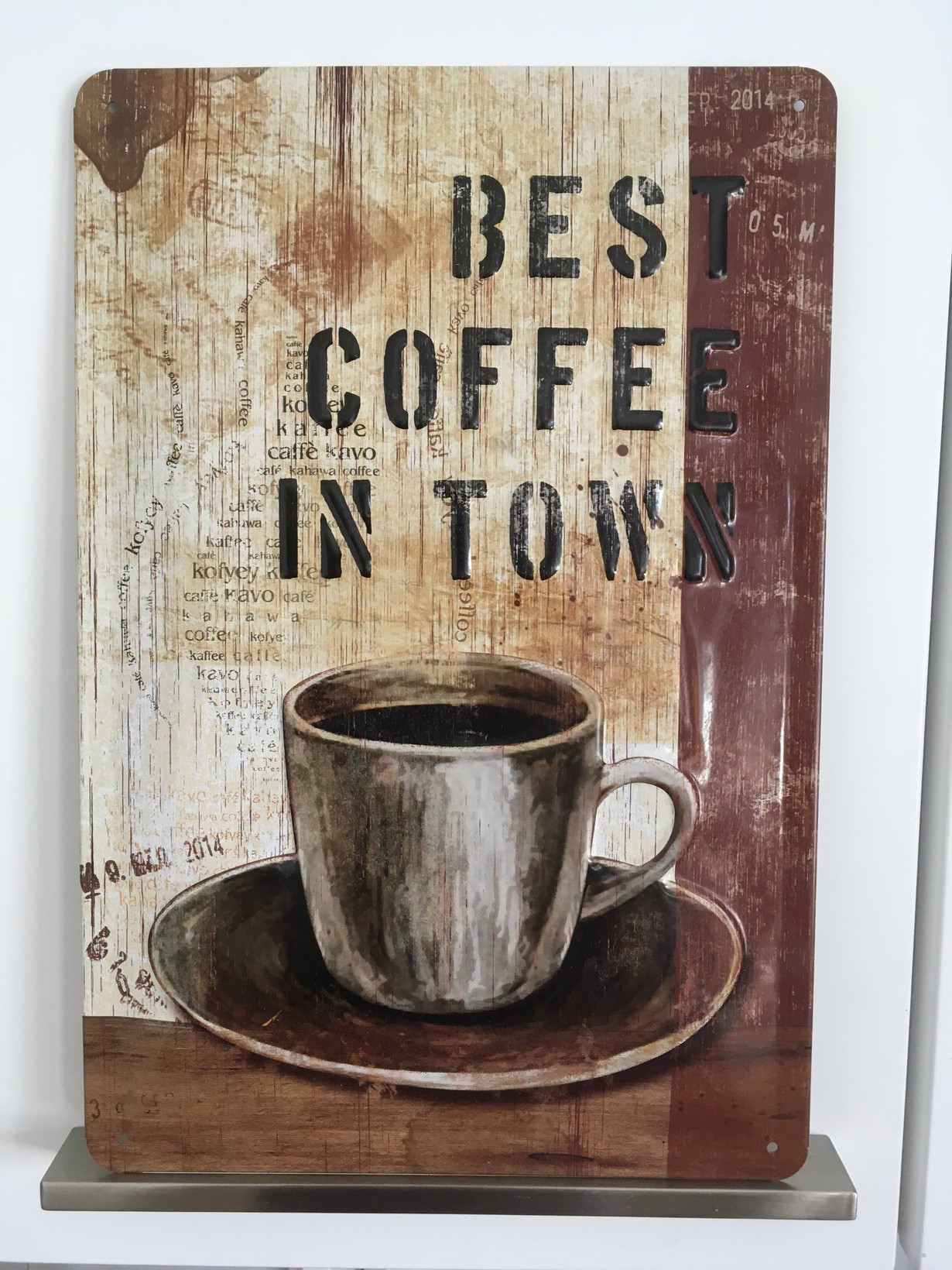 Kahvikissana aamukahvi on päivän tärkein aloittaja ja kyltti muistuttaa ettei vaan sutaise kahvia kasaan vaan tekee sen kunnolla jos kerran tekee. :)