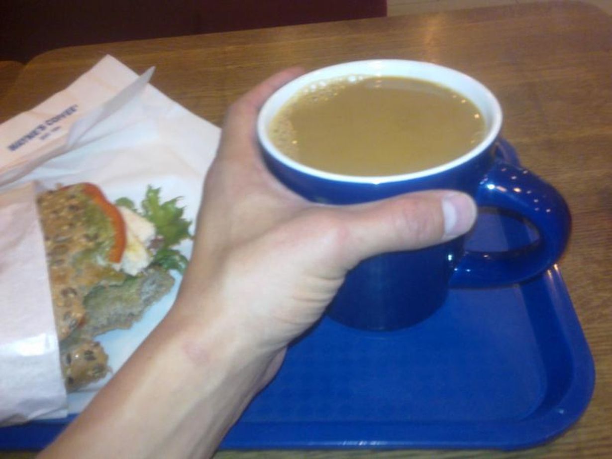 Kampin Waynes coffeessa on mahtavan kokoiset kahvikupit. Ekan kerran kun tilasin ison kahvin olin ihmeissäni, nyt tilaan sen harva se päivä. Siksi tämä on minun kuppini.