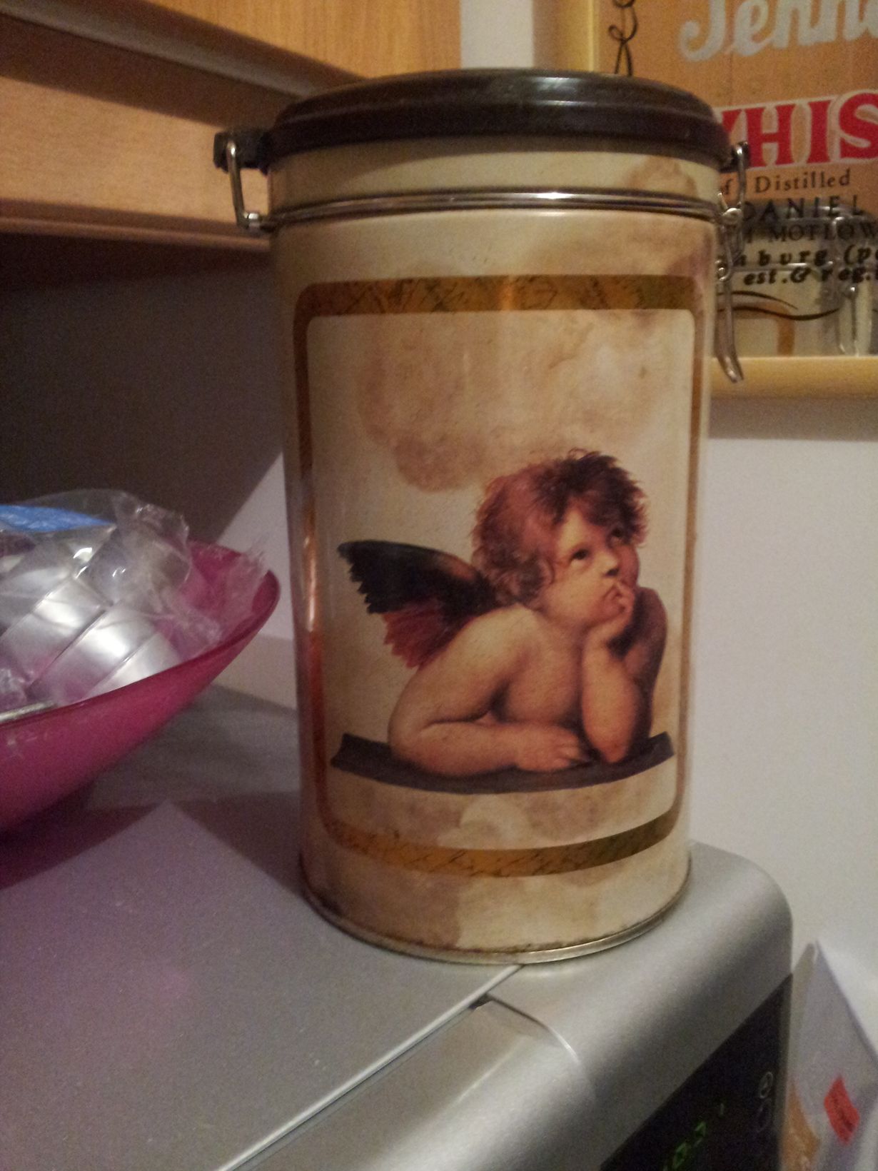 Löysin tämän ihanuuden kirpputorilta muutama vuosi sitten, ihastui siihen välittömästi, sillä se muistuttaa minua lapsuuden muistikeräys lapuista :) tulee hyvälle mielelle, aivan kuten kahvistakin.