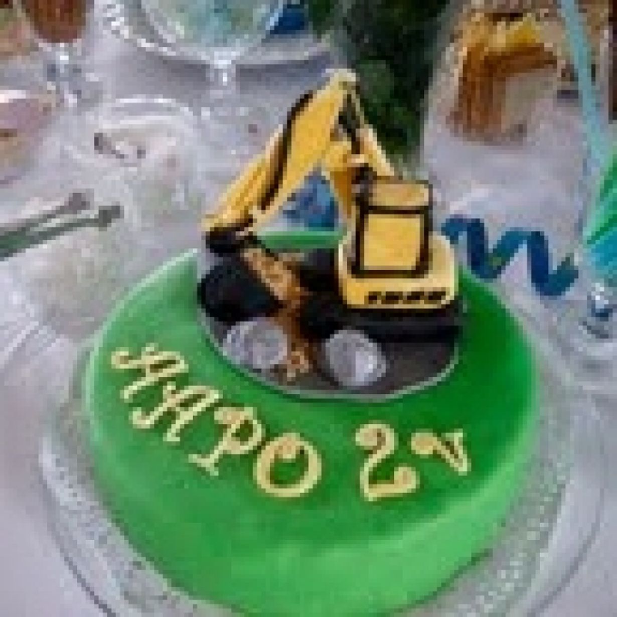 Kun kaivurimies täyttää 2v, pitää kakkuakin koristaa tietysti kaivinkone! Siispä taidot koetukselle ja kun puolivälissä sankari jo toteaa "kaivui" ollaan oikeilla jäljillä :)
