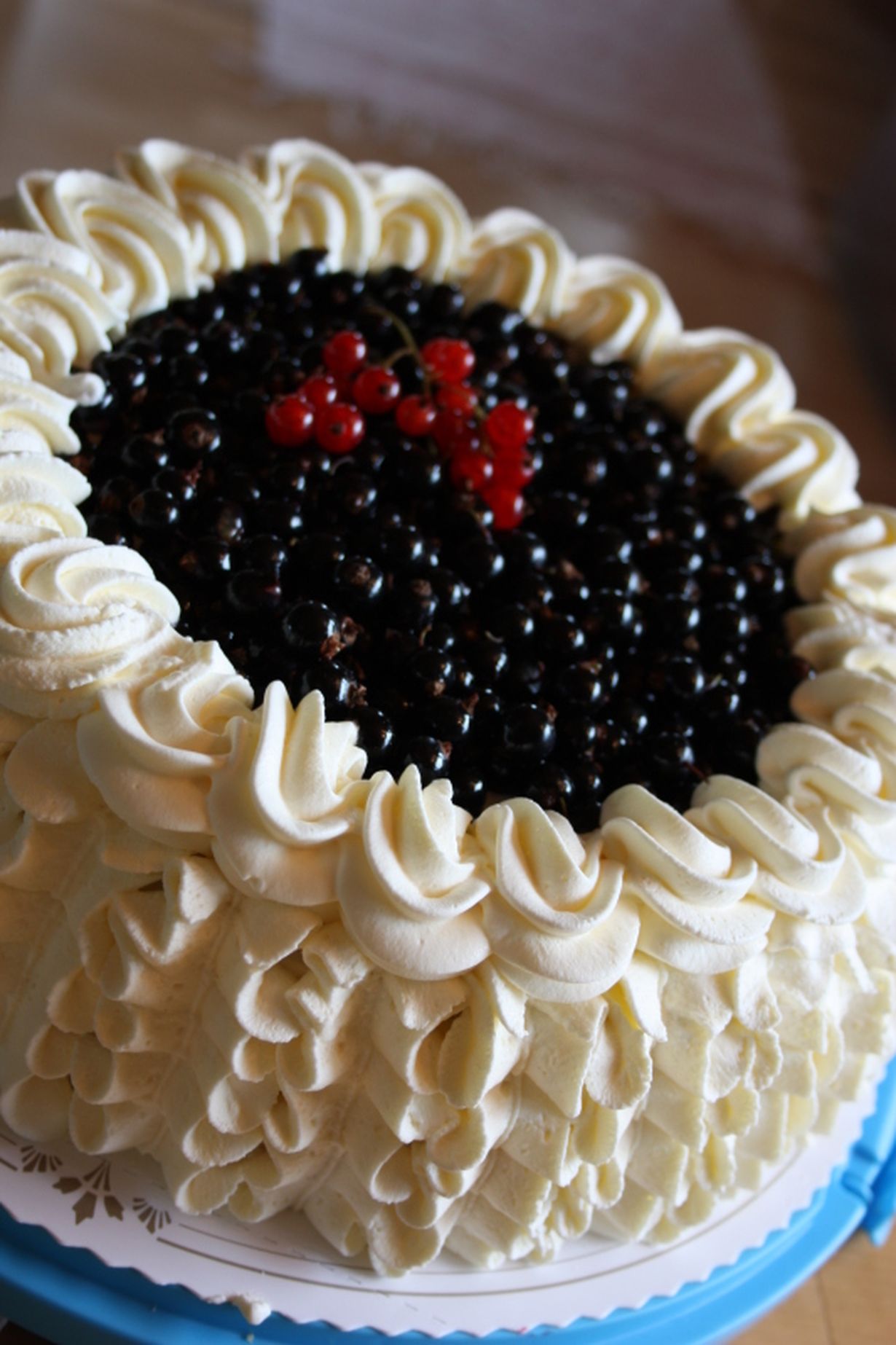 Tein kakun viime elokuussa tätini 50-vuotis juhliin. Kakun päällä mustia viinimarjoja, väriä päälliseen toi muutama terttu punaisia viinimarjoja, joista muodostui kaunis yksityiskohta. Kakkujen tekeminen on hauskaa aina silloin, kun koko prosessi onnistuu eikä mikään mene pieleen! Paras kiitos kakun tekijälle on se, että kakku maistuu vieraille, eikä sitä jää yhtään yli!
