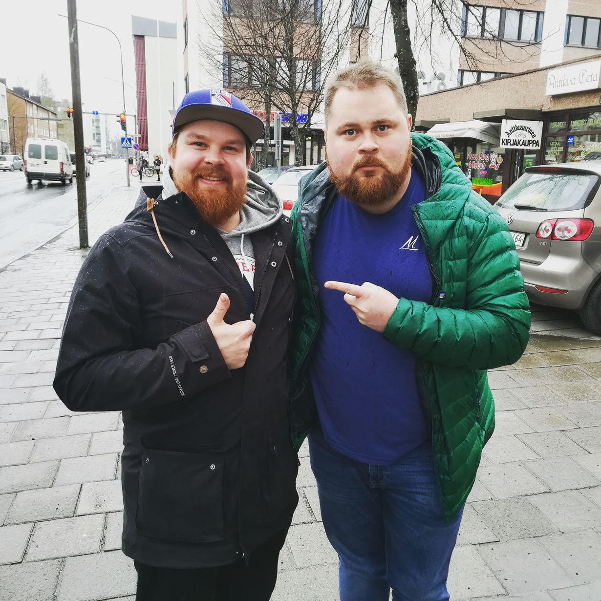 Hei, törmäsin keväällä julkkiskokki Akseli Herleviin, joka tunnetaan myös burgerimiehenä. Akseli oli tekemässä burgereita Joensuun citymarketeissa, joita en itse kerennyt valitettavasti maistelemaan vaikka mies pyysikin burgerille. Hauskaa tässä kohtaamisessa oli se, että näytämme jonkin verran myös toisiltamme punapartojen ansiosta.