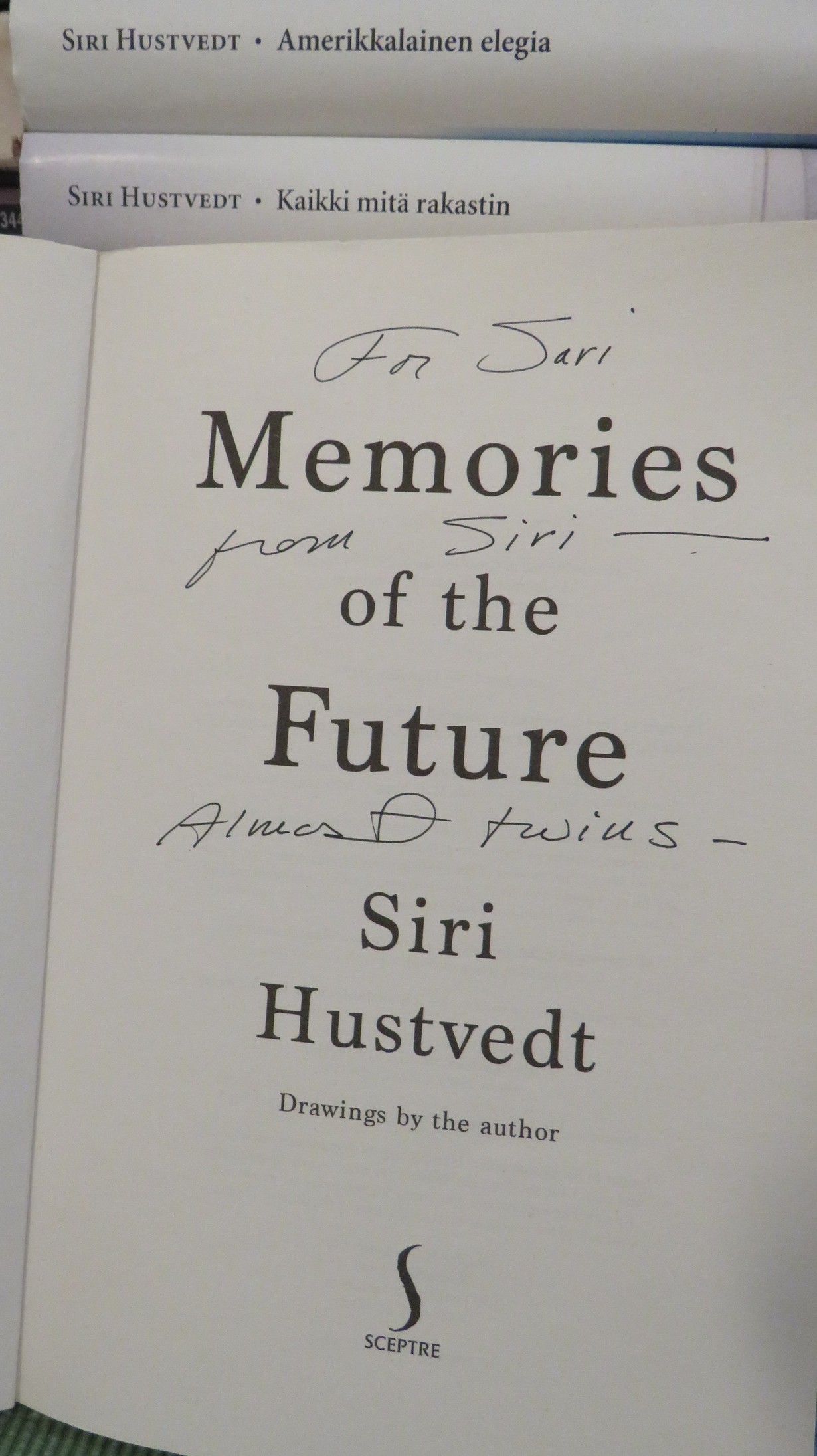 Siri Hustvedt vetää täyteen isoja saleja, ja luentatapahtumien jälkeen hänen nimikirjoitustaan jonottaa satoja ihmisiä. Jonotus palkittiin ihanan henkilökohtaiselta tuntuvilla sanoilla.