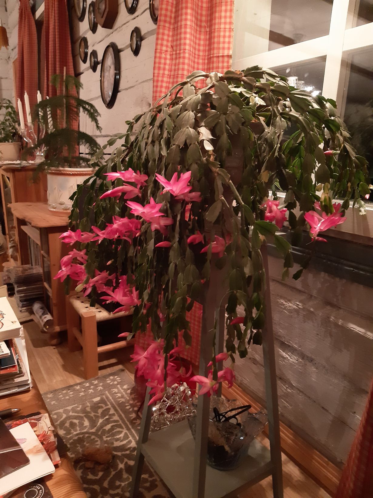 Tämän kaktuksen pelastin talomme roskiksesta. Naapurini kuoli syöpään ja tyttäret eivät halunneet kukkaa. On kukkinut joka vuosi tämän jälkeen, tästä on nyt ainakin 5 vuotta.