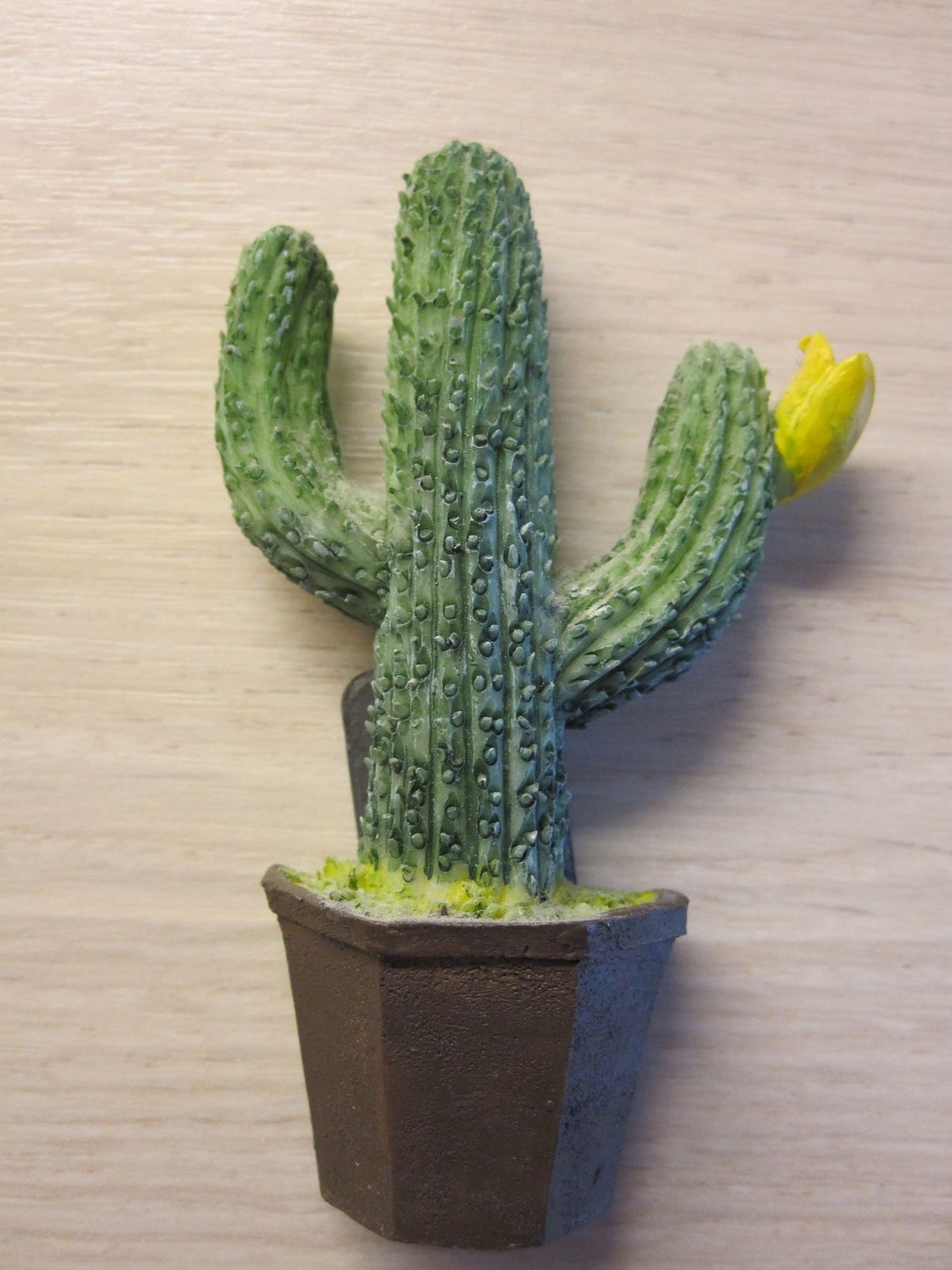 Jääkaappimagneettien keräilyn lisäksi harrastan kaktuksia. Virkkaan sellaisia mohairlangasta. Kun näin kaktusmagneetin, oli pakko heti ostaa se.
