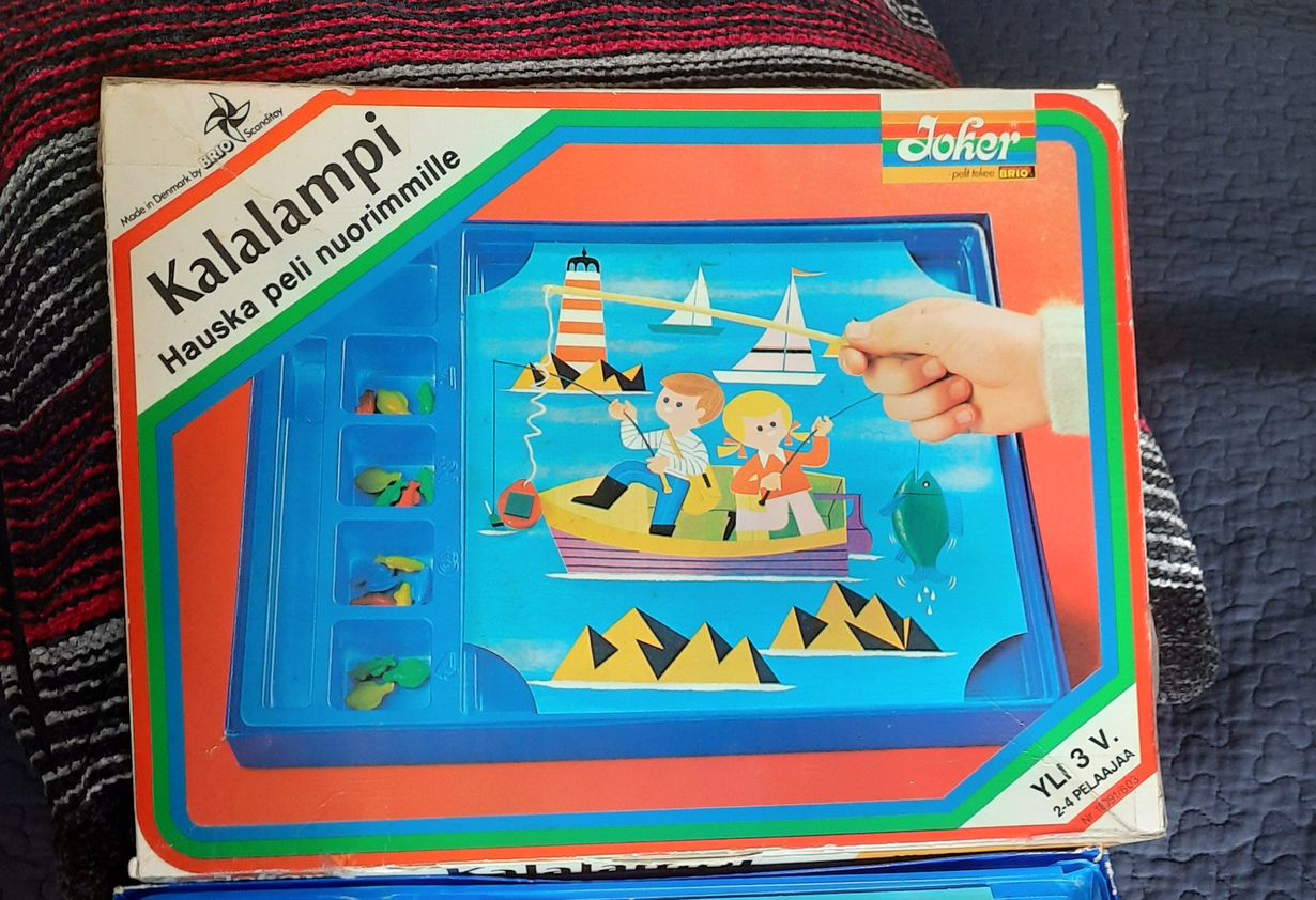 Tällä kalalampi- pelillä kalastelimme n 36 vuotta sitten poikamme kanssa,. Nyt ongimme kaloja poikamme 3,5 v tytön kanssa.