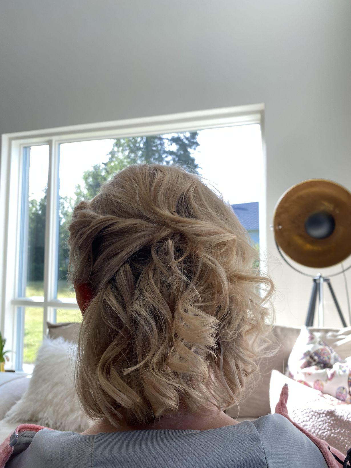 Vakikampaajani perui ajan vasta edellisenä iltana, mutta onneksi sain kuitenkin peruutusajan toisaalta. Oli mukava mennä häihin vieraaksi, kun kampaus oli kunnossa!