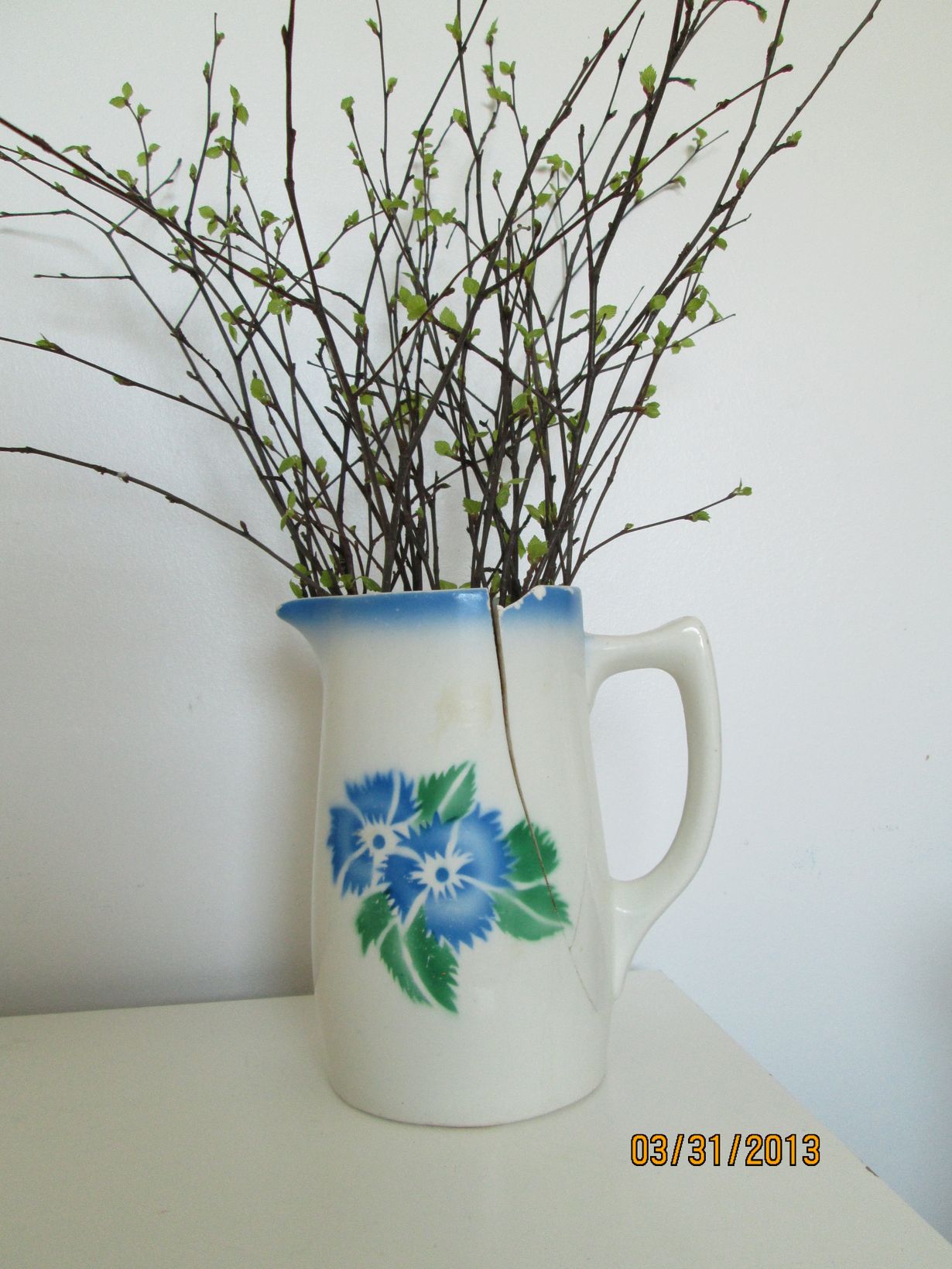 Naapurin mummun vanhaltapuolen pelastettu Arabian kannu. Rikkihän tuo on mutta palvelee uudessa tehtävässä maljakkona. Niin ihana ja rakas kannu, tunnearvosta puhumattakaan :)