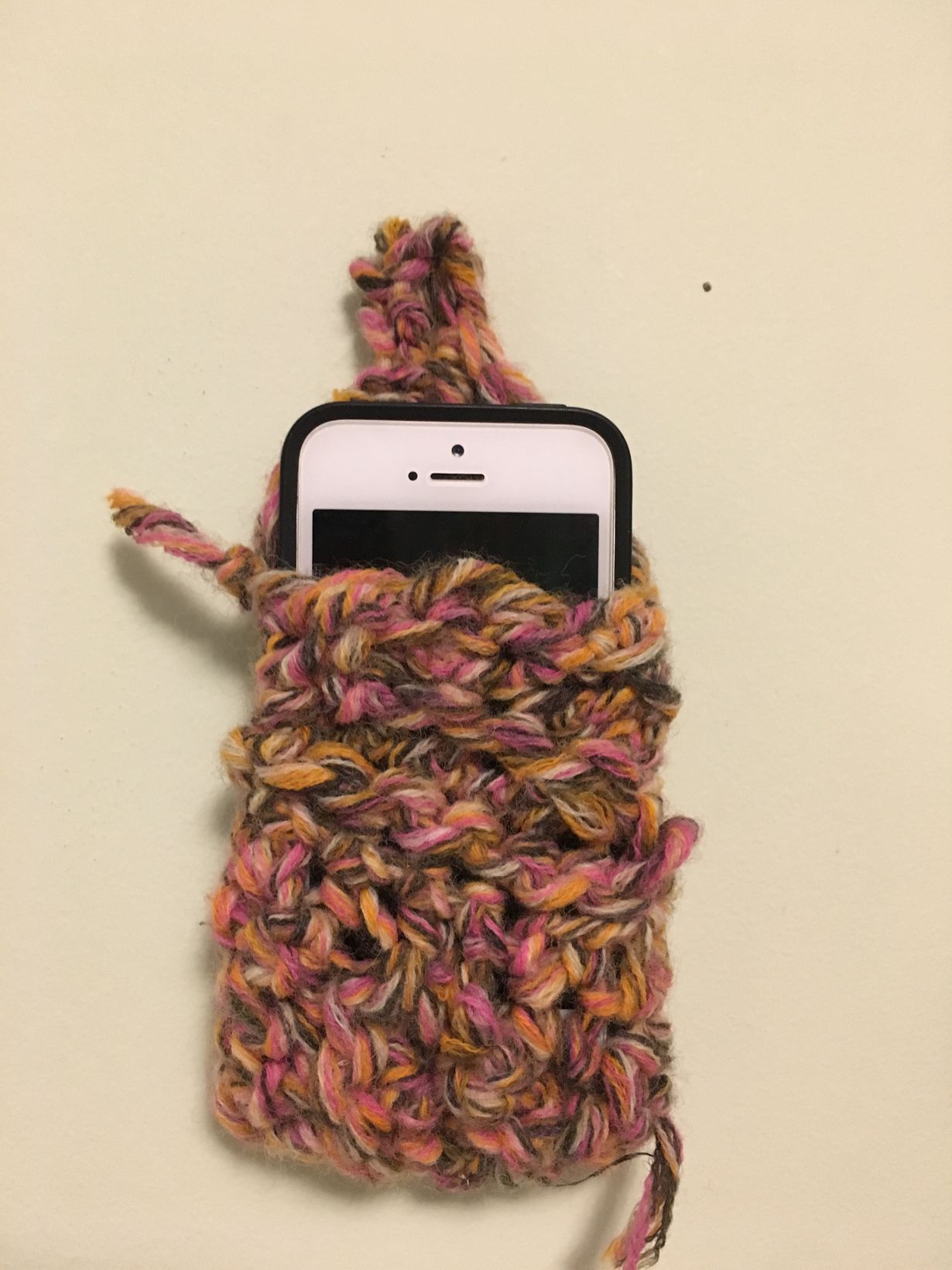 Tämän ihanan ja pehmeän puhelinkotelon sain tyttäreltäni n 10 vuotta sitten. Hartaudella oli käsitytunnella neulottu.