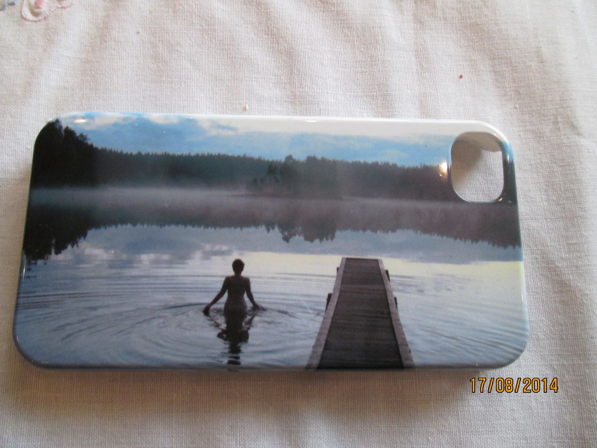Teetin ensimmäiseen älypuhelimeeni omasta kuvasta suojakotelon. Kuva on otettu keskiyöllä muutama vuosi sitten juhannusyönä Vaalassa hyvän ystävän häissä. Olen itse menossa uimaan siinä. Arvelin ettei ainakaan samanlaista kuorta tule vastaan. Kuori maksoi vähän päälle 20€ eli melkein saman kuin kaupassa muutävät kuoret.
